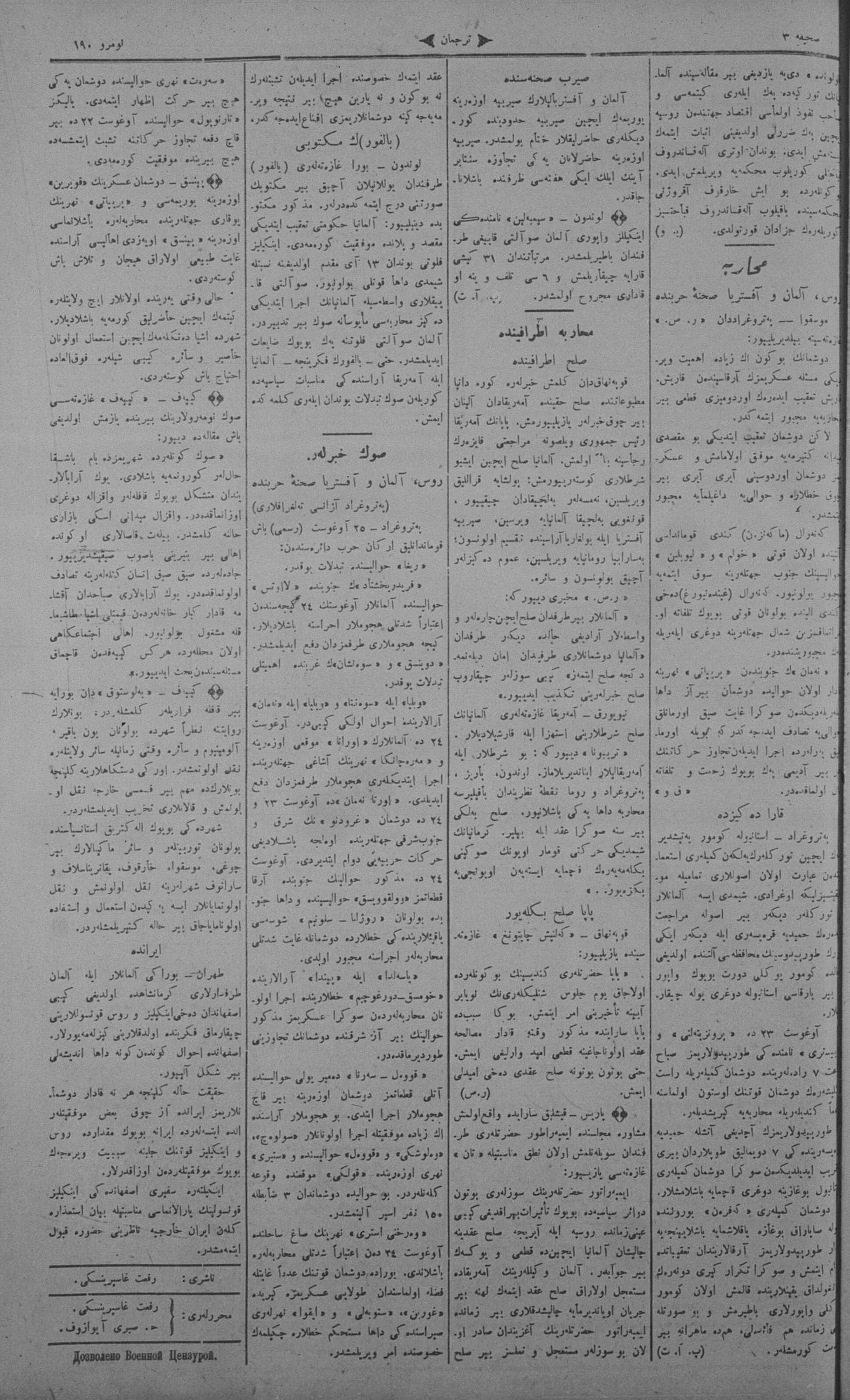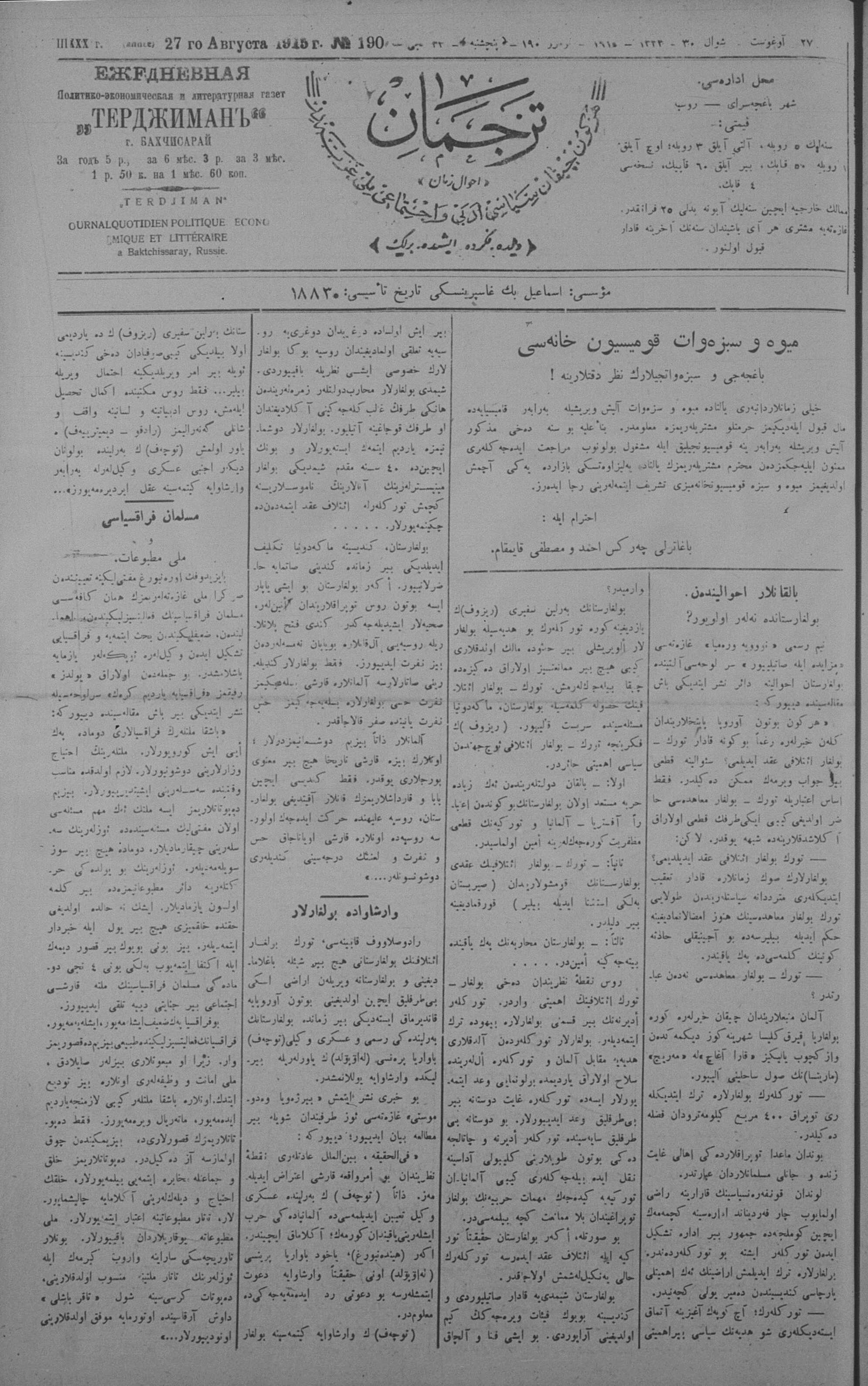 Tercüman, 27 August 1915 Year 33 No 190