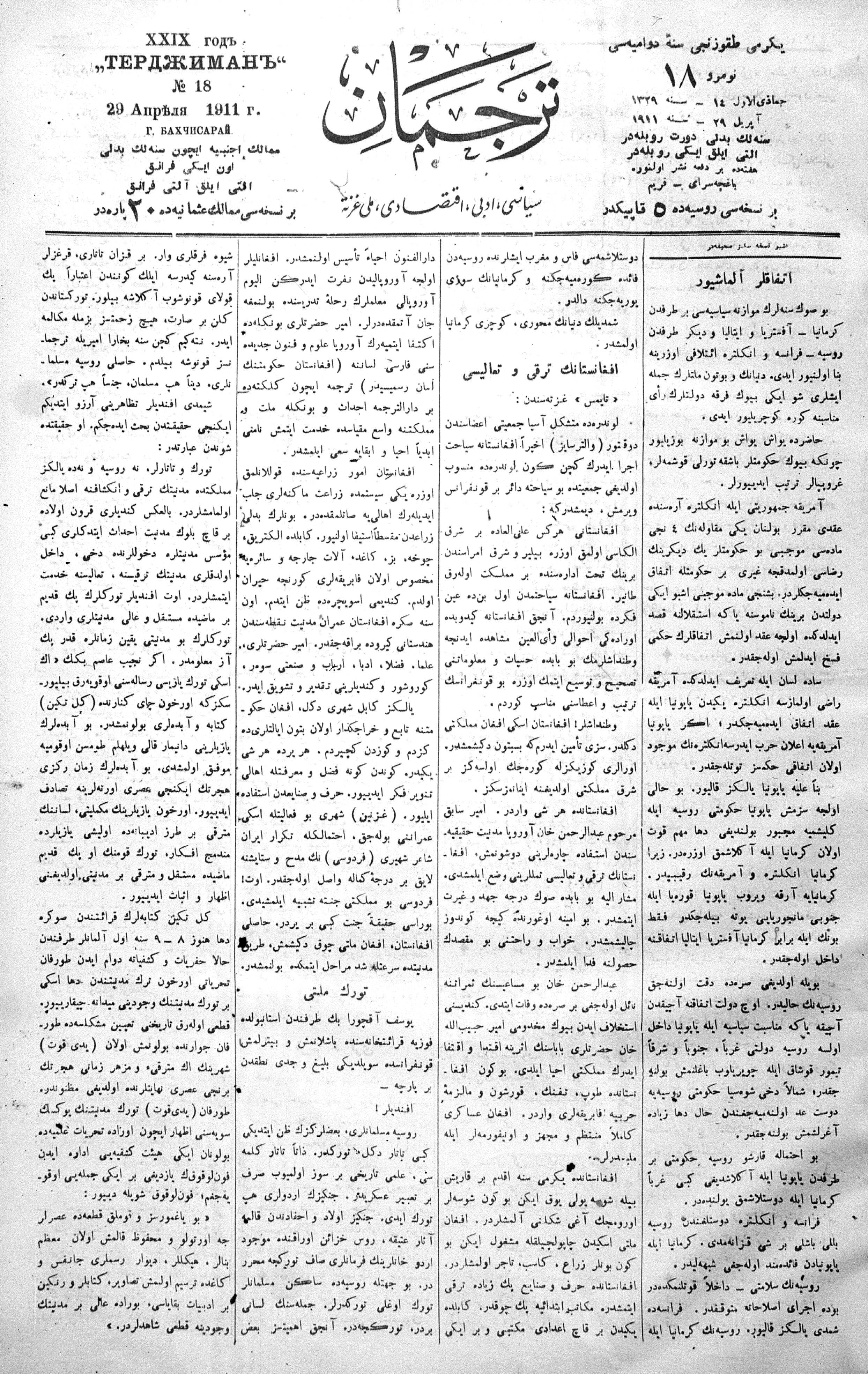 Tercüman, 29 April 1911 Year 29 No 18