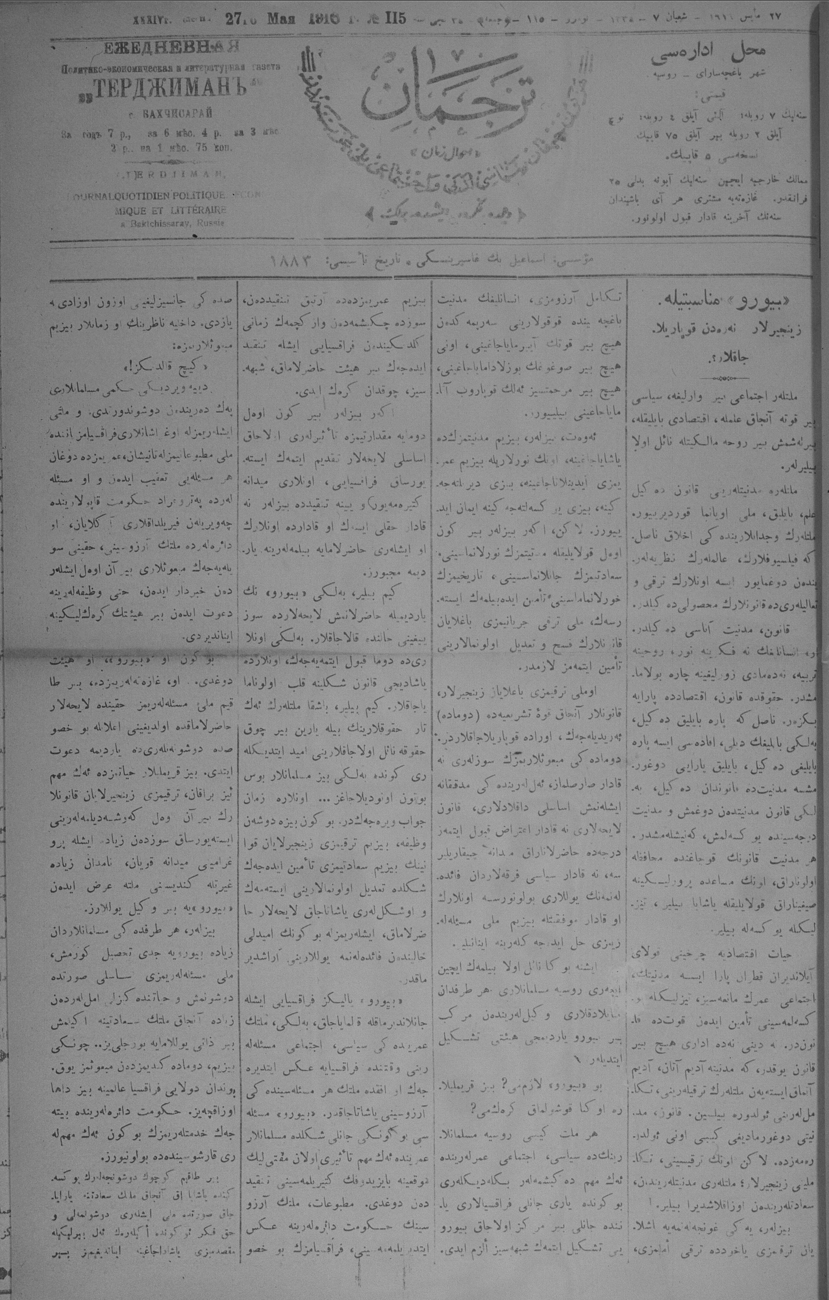 Turkish-Russian newspaper published in Crimea by İsmail Gaspıralı.