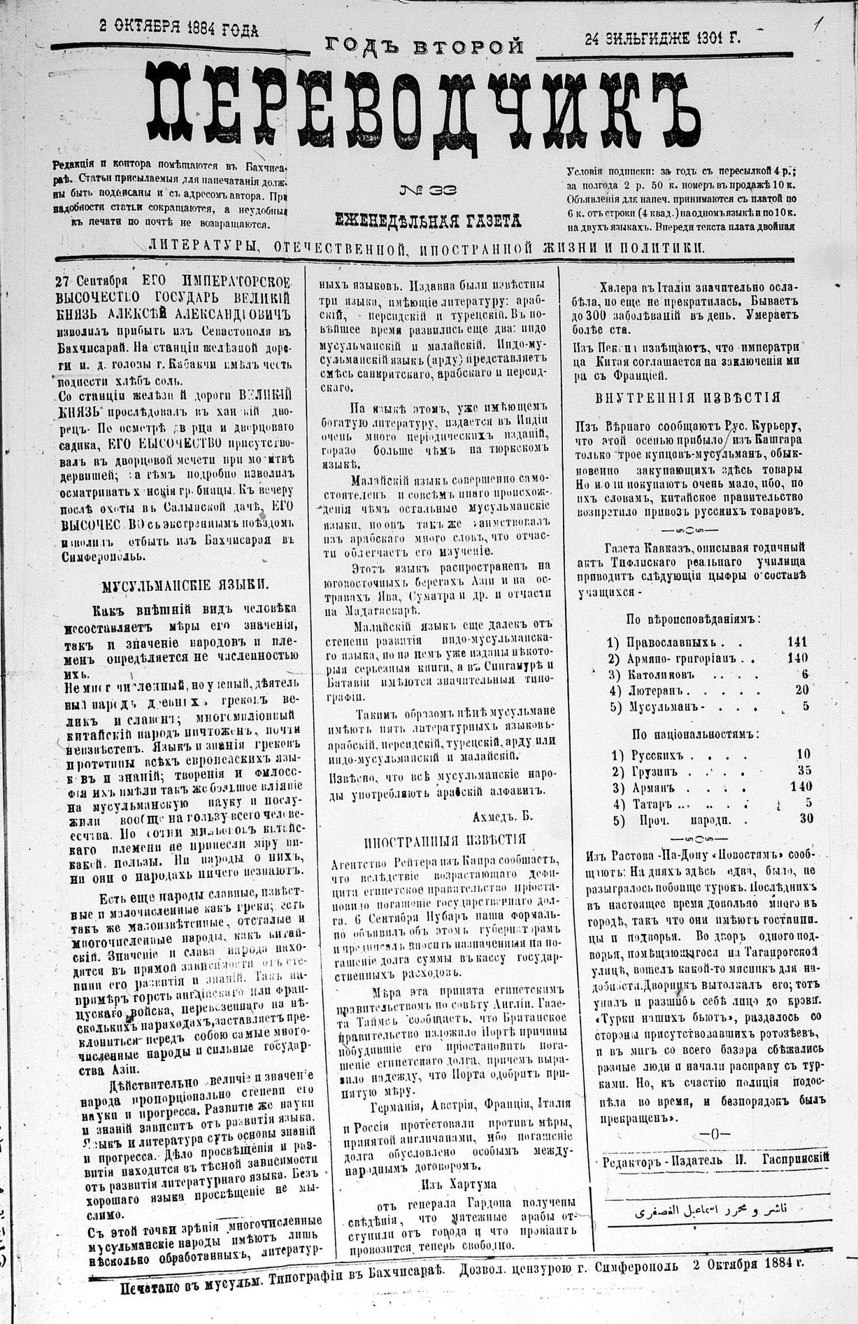 Turkish-Russian newspaper published in Crimea by İsmail Gaspıralı.
