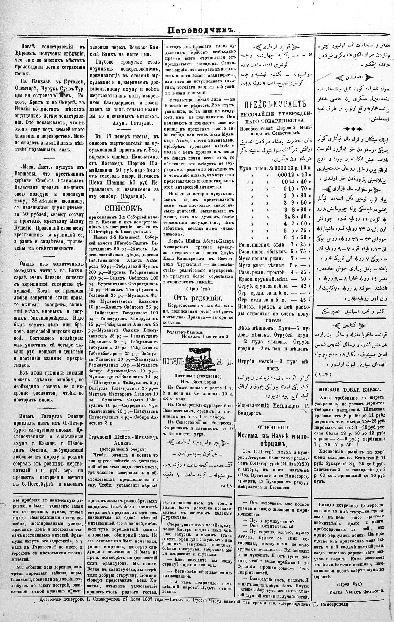 Turkish-Russian newspaper published in Crimea by İsmail Gaspıralı.