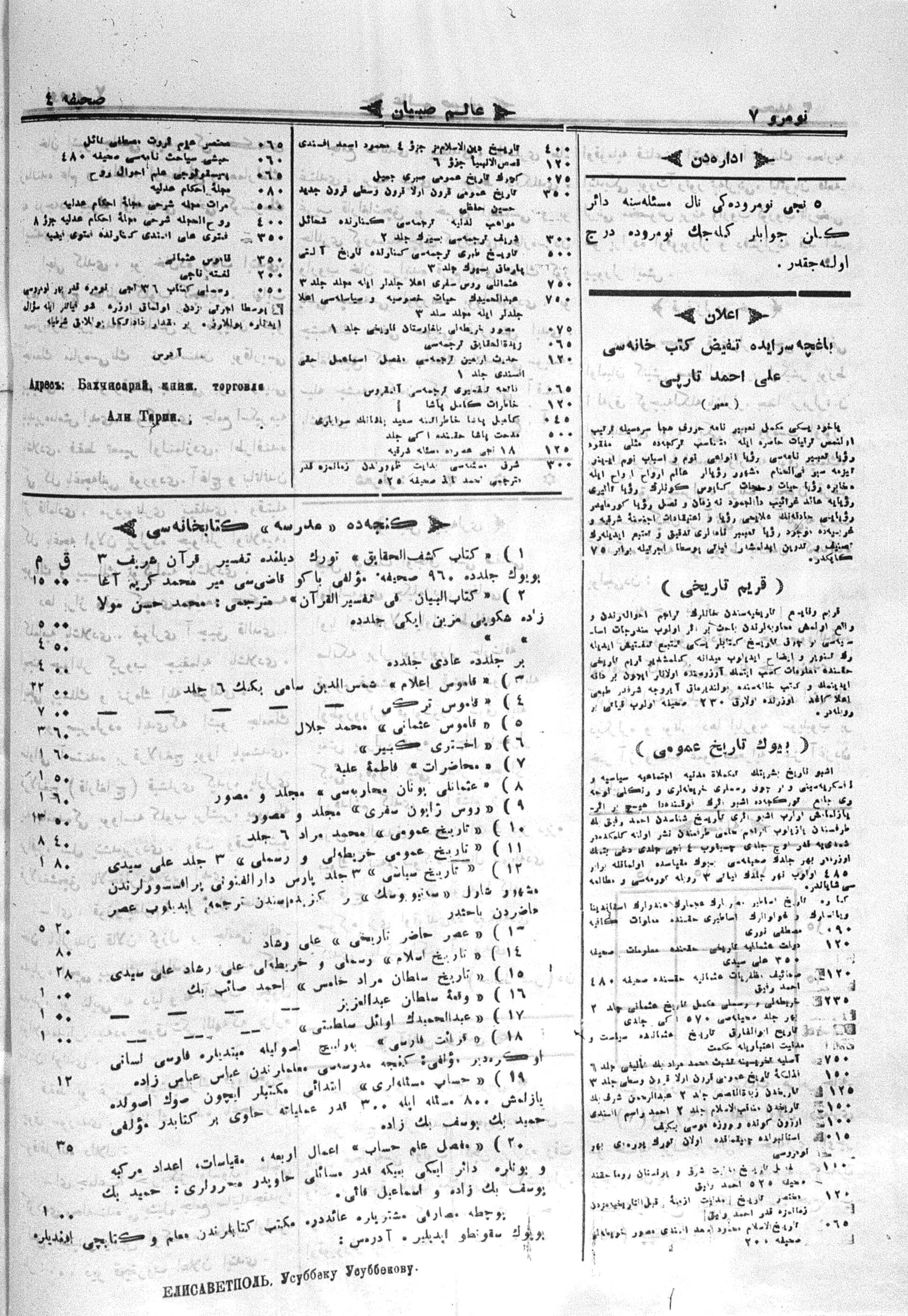 Turkish-Russian newspaper published in Crimea by İsmail Gaspıralı.