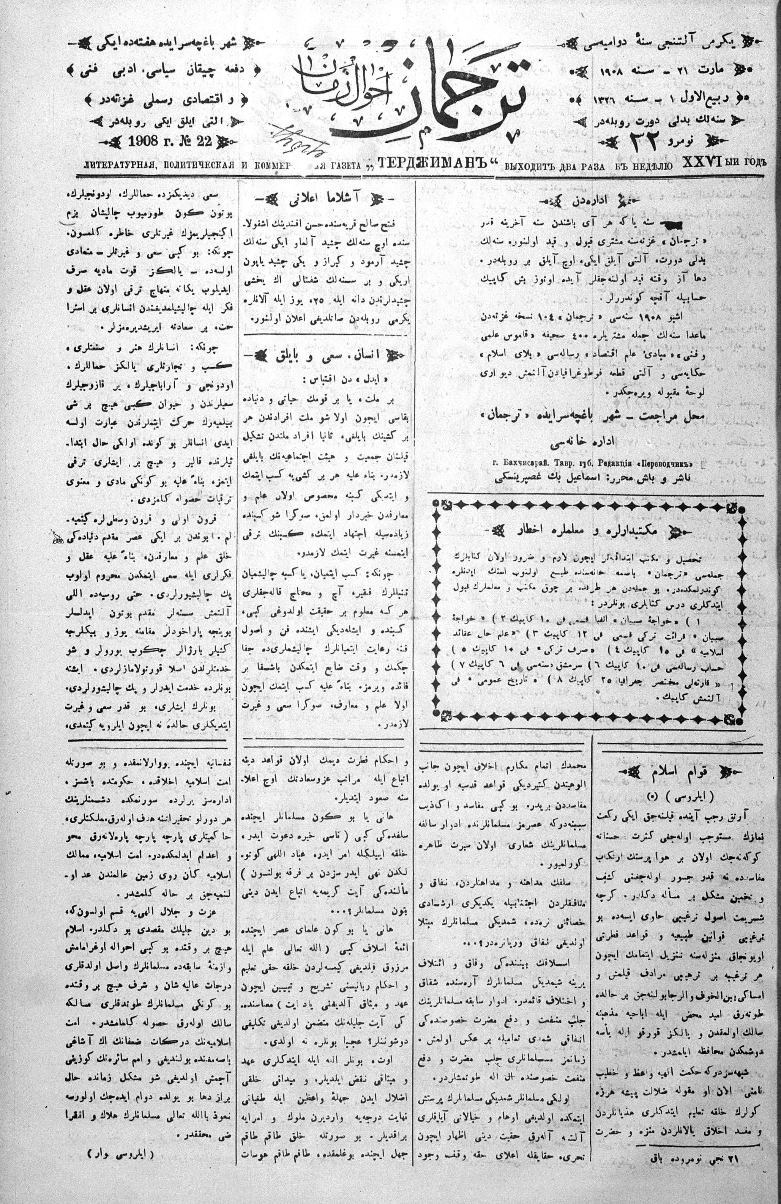 Tercüman, 21 March 1908 Year 26 No 22