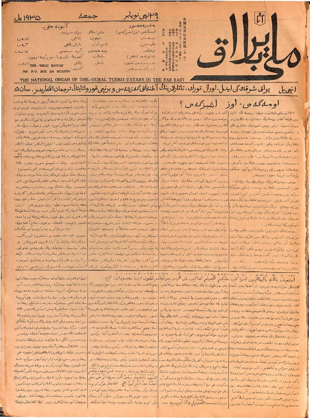 The Milli Bayrak newspaper was written in Tatar with Arabic script.