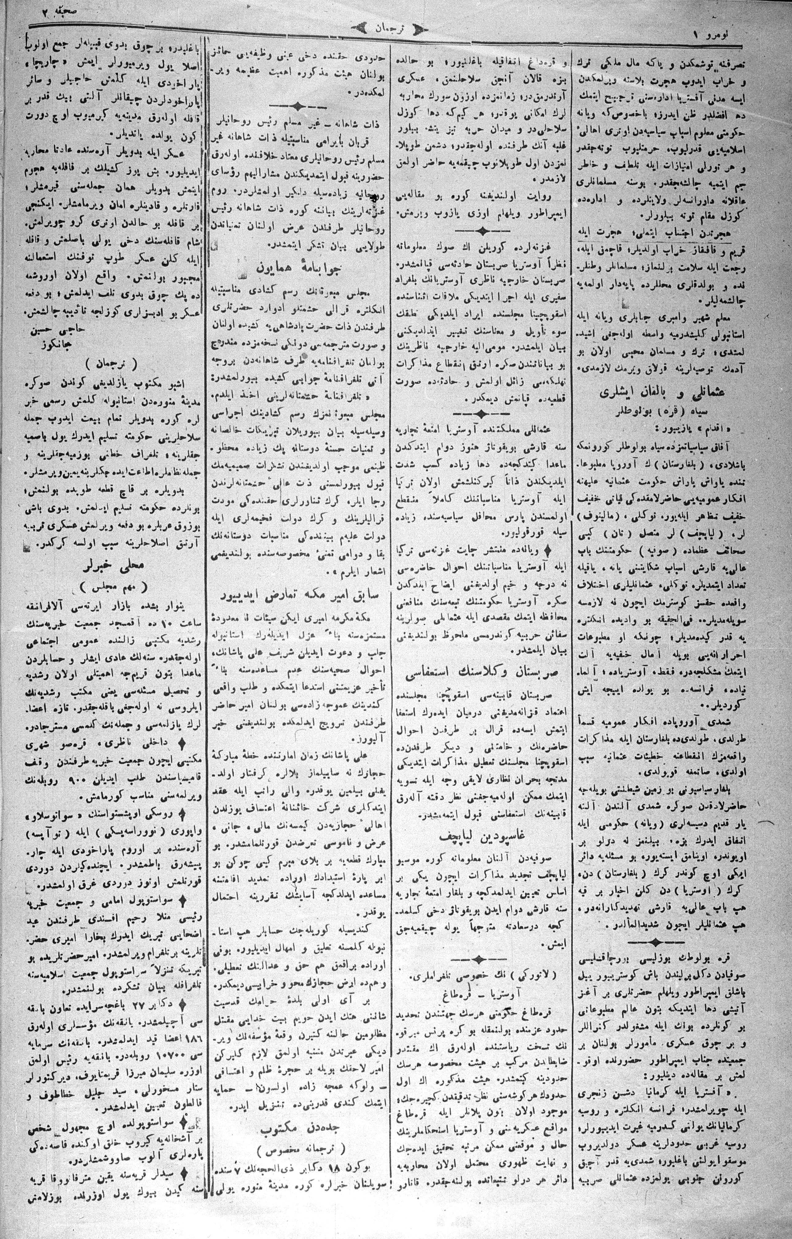 The name of the newspaper changed to Tercüman-ı Ahval-i Zaman in 1905. In 1909, it started to be published under its first name, Tercüman.