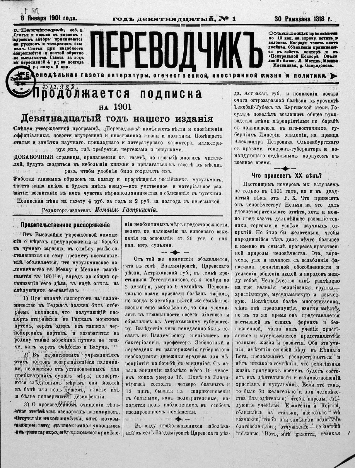 Tercüman, 08 January 1901 Year 19 No 1