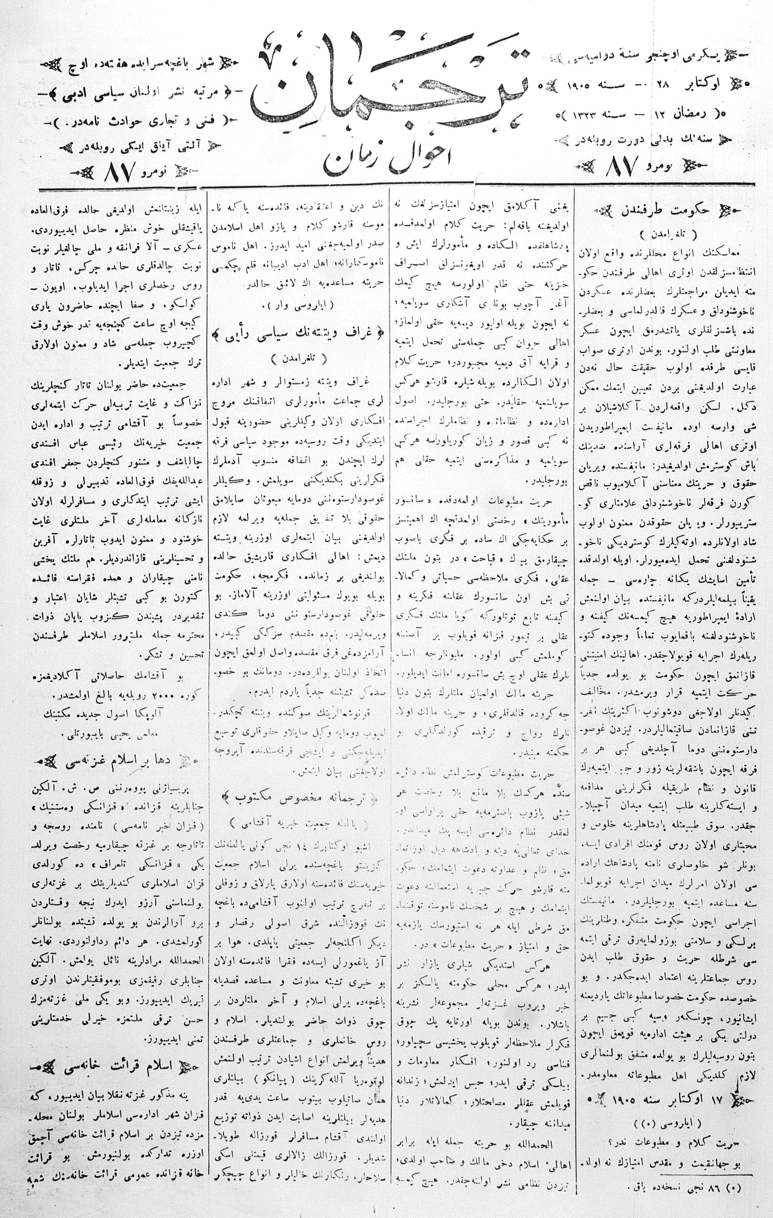 The name of the newspaper changed to Tercüman-ı Ahval-i Zaman in 1905. In 1909, it started to be published under its first name, Tercüman.