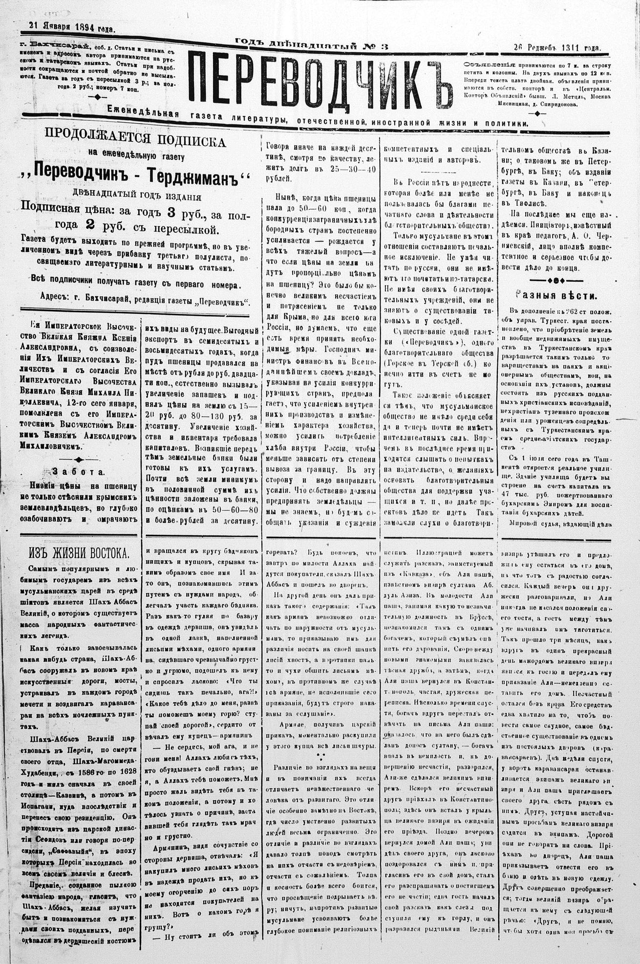 Turkish-Russian newspaper published in Crimea by İsmail Gaspıralı.