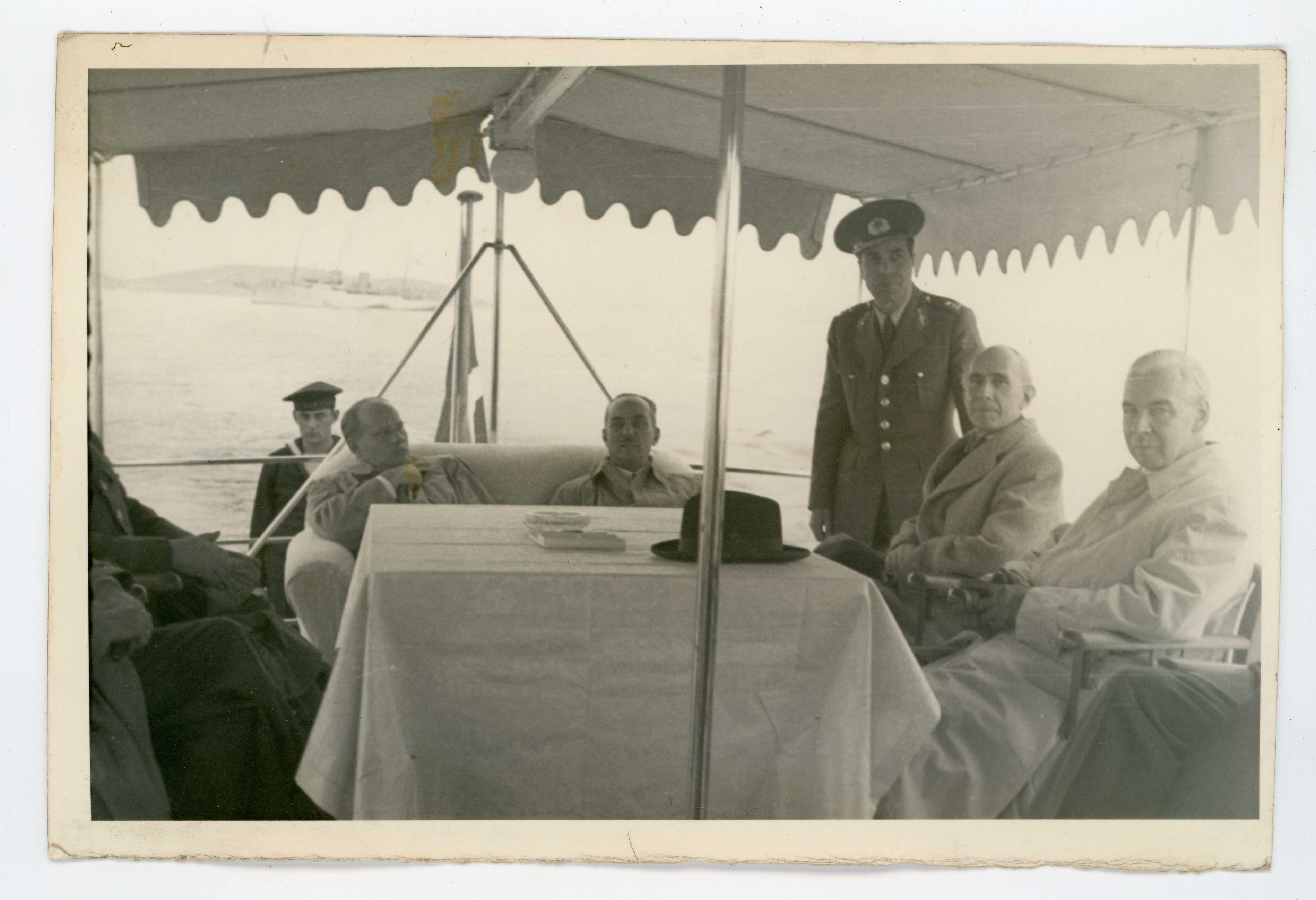 Milli Savunma Bakanı Ethem Menderes, Alman Savunma Bakanı Theodor Blank ve Alman Büyükelçisi Dr. Sbaas ile Yassıada yolunda gemideler