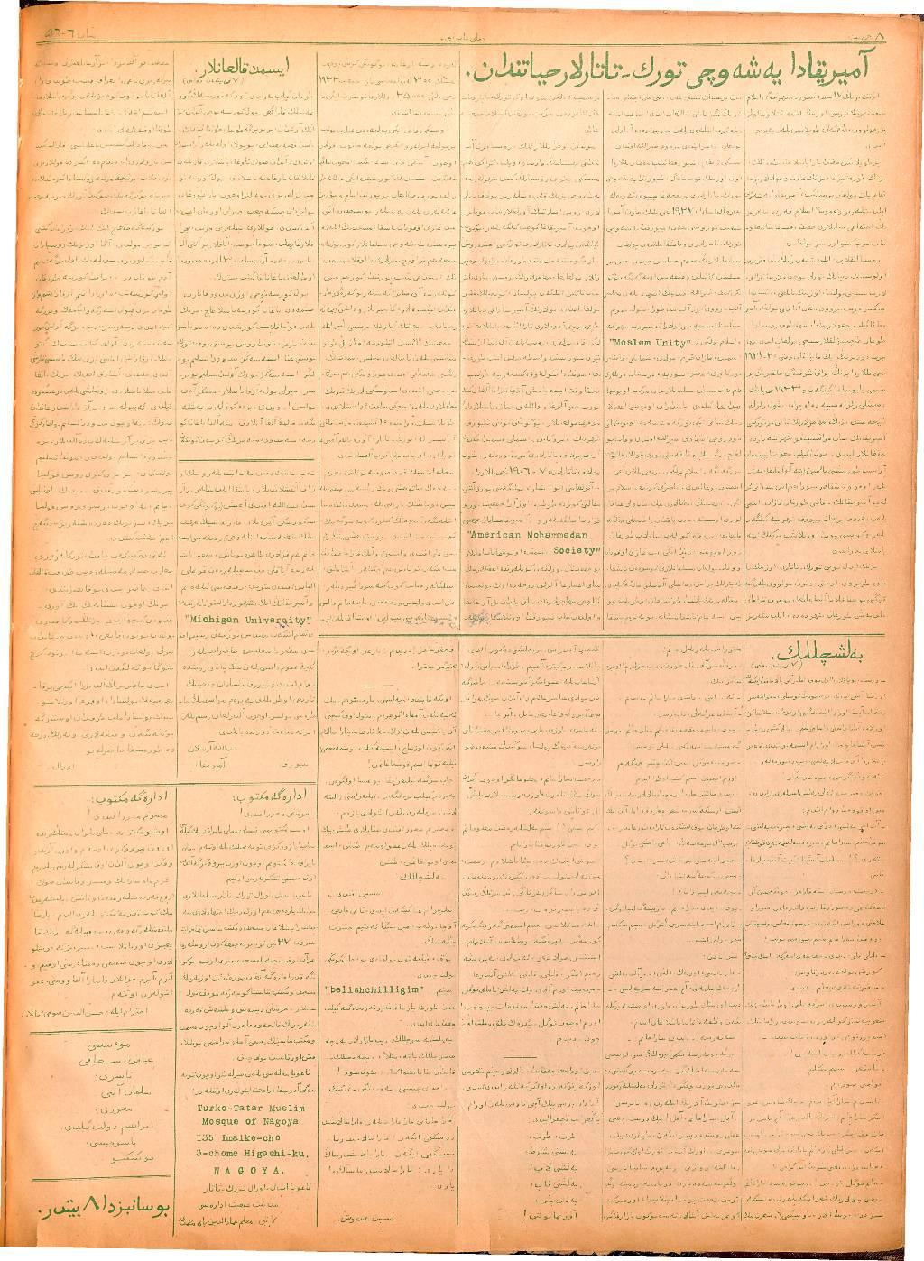 The Milli Bayrak newspaper was written in Tatar with Arabic script.