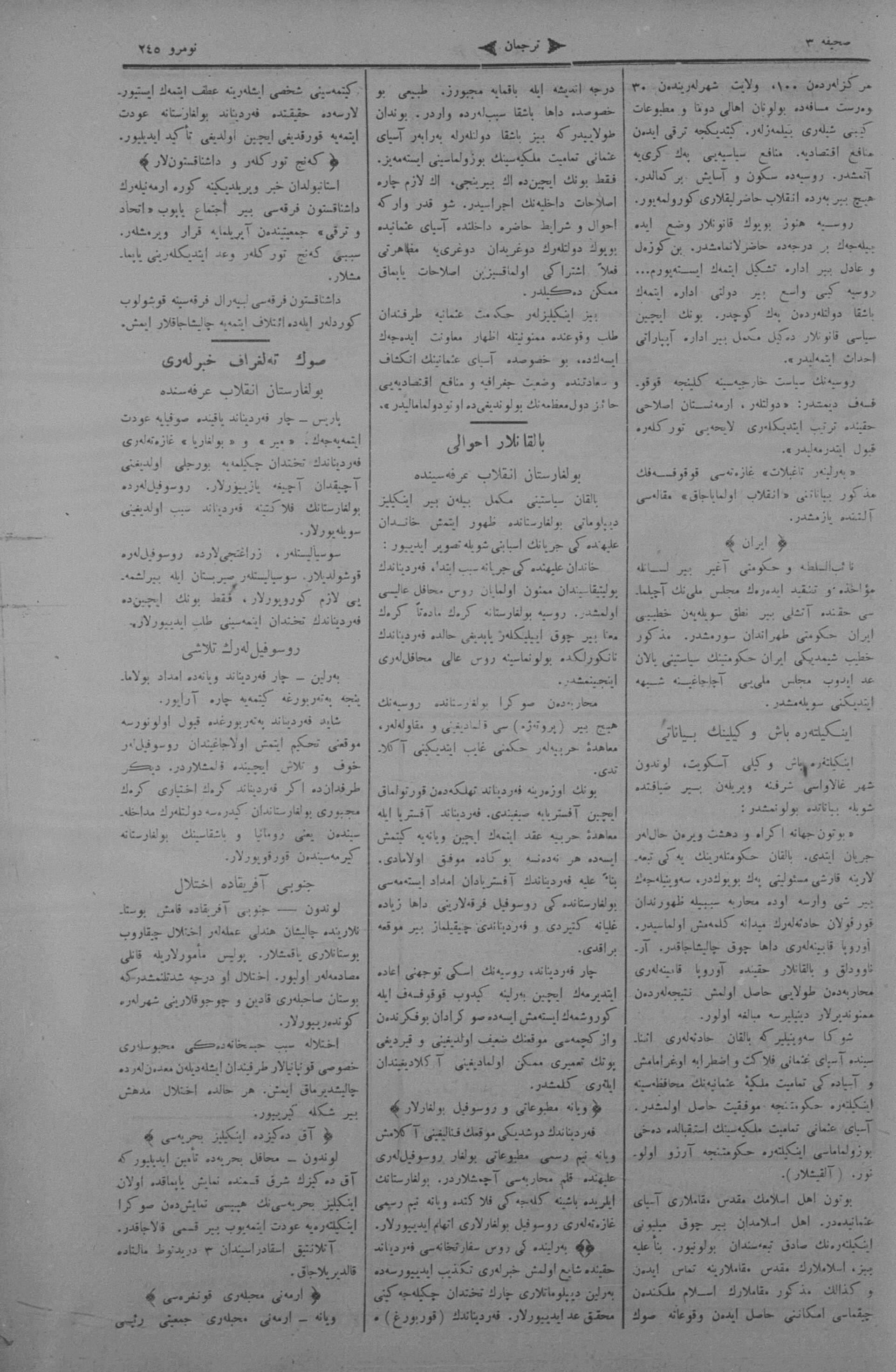 The name of the newspaper changed to Tercüman-ı Ahval-i Zaman in 1905. In 1909, it started to be published under its first name, Tercüman.