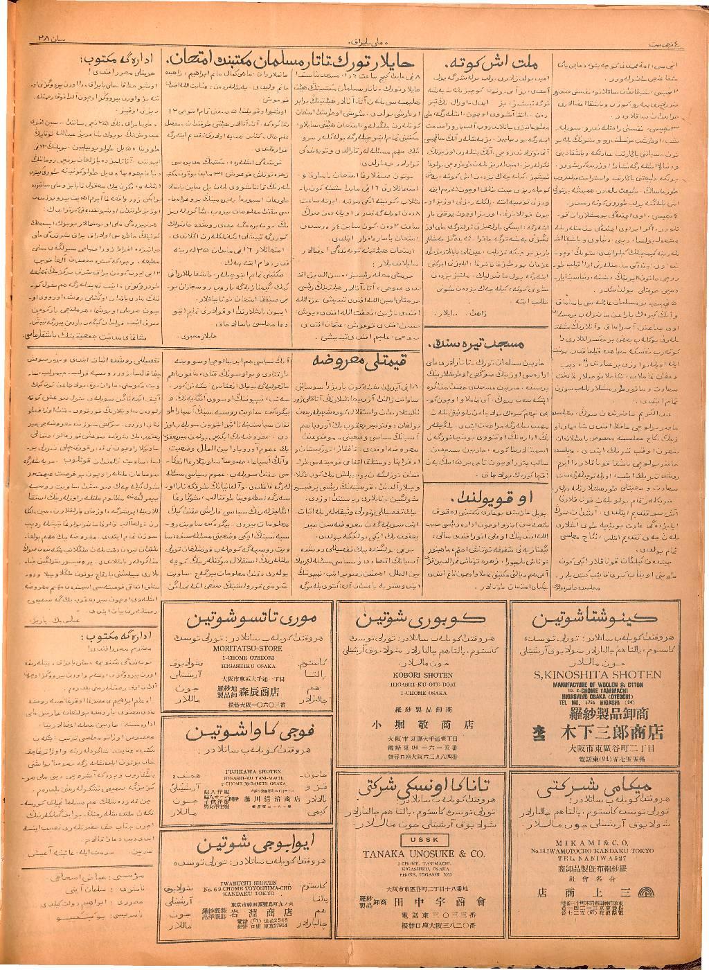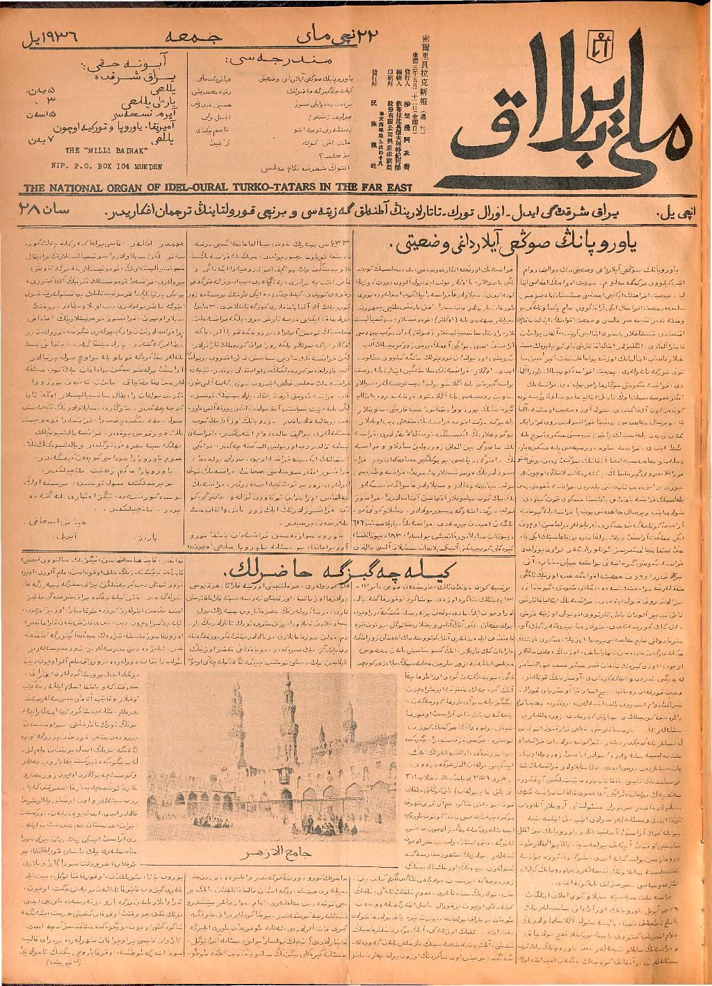 The Milli Bayrak newspaper was written in Tatar with Arabic script.