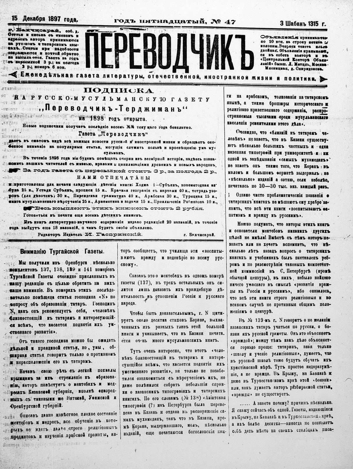 Turkish-Russian newspaper published in Crimea by İsmail Gaspıralı.