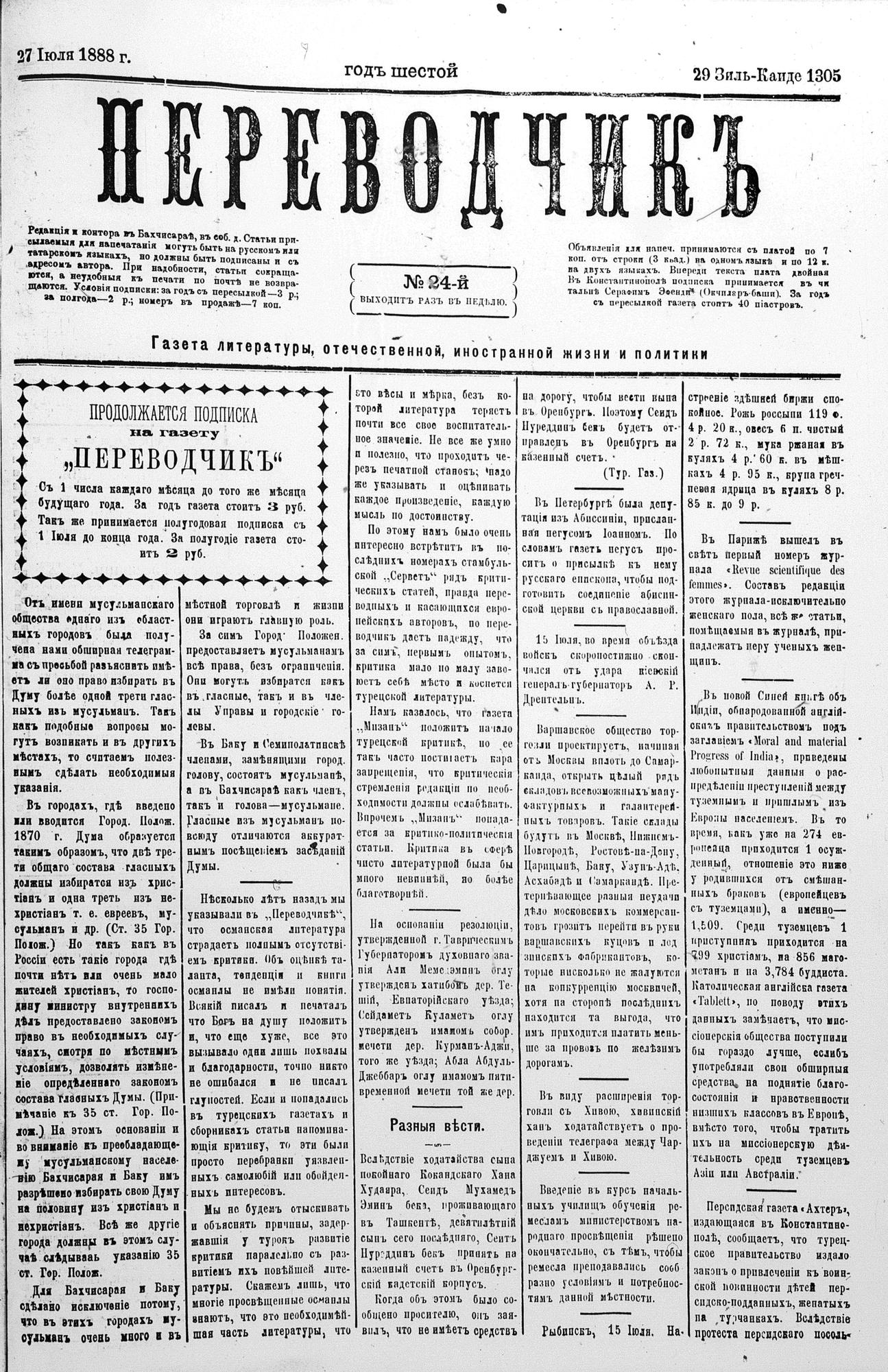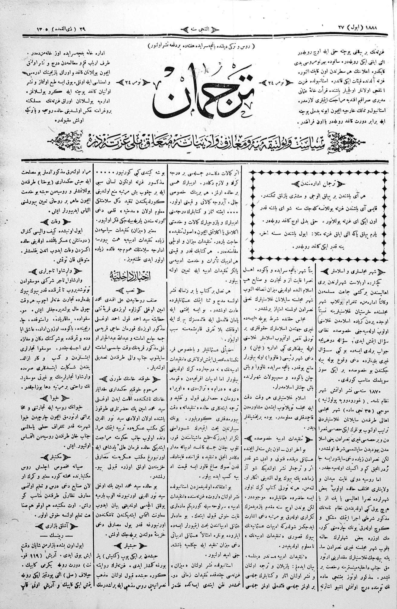 Tercüman, 27 July 1888 Year 6 No 24