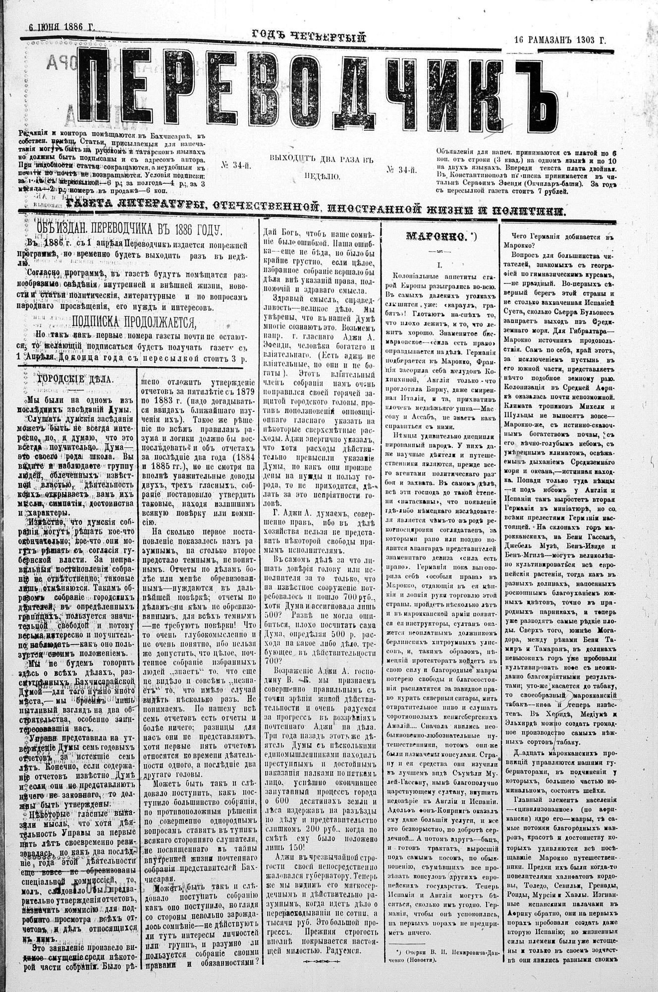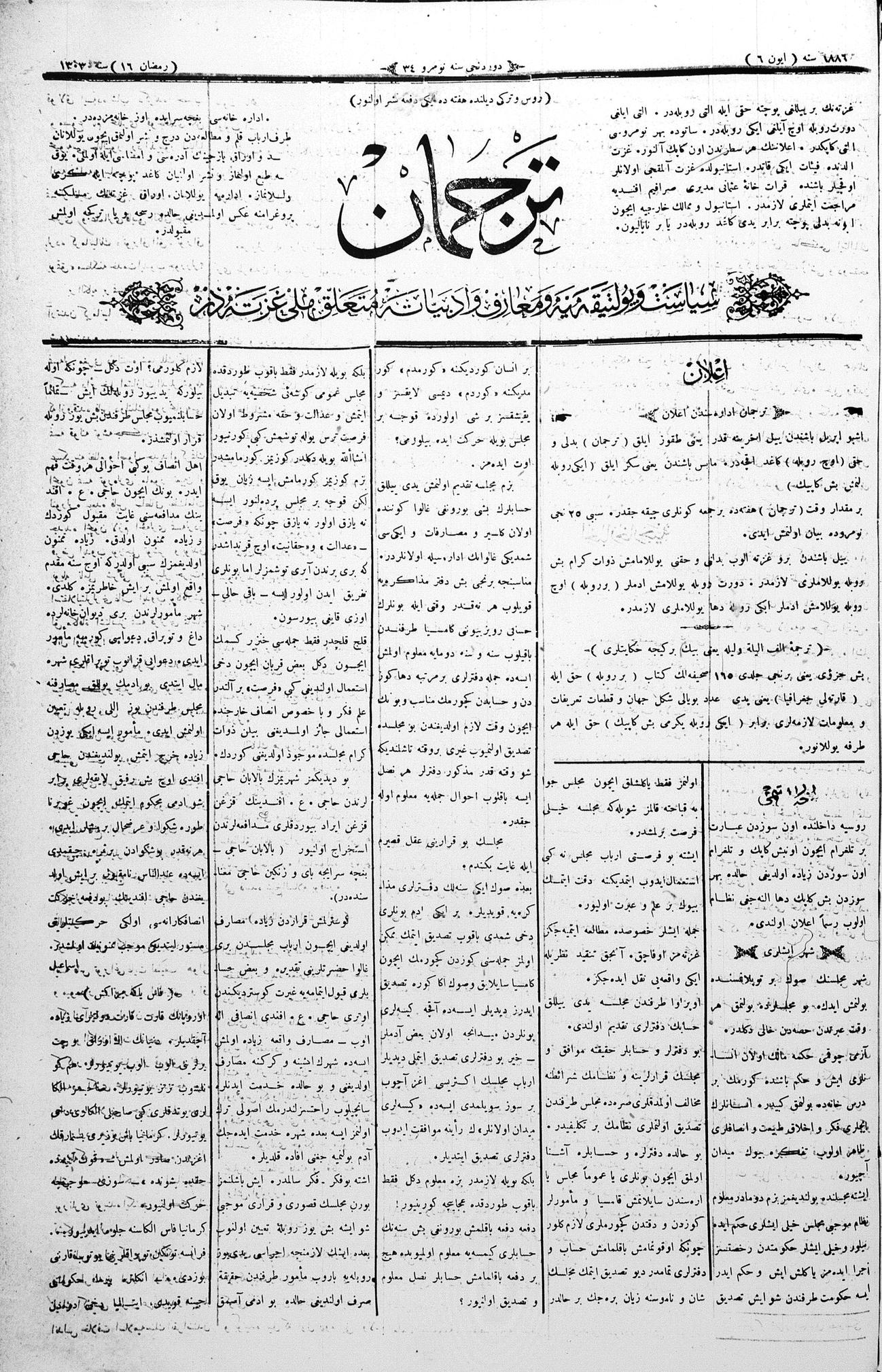 Tercüman, 06 June 1886 Year 4 No 34