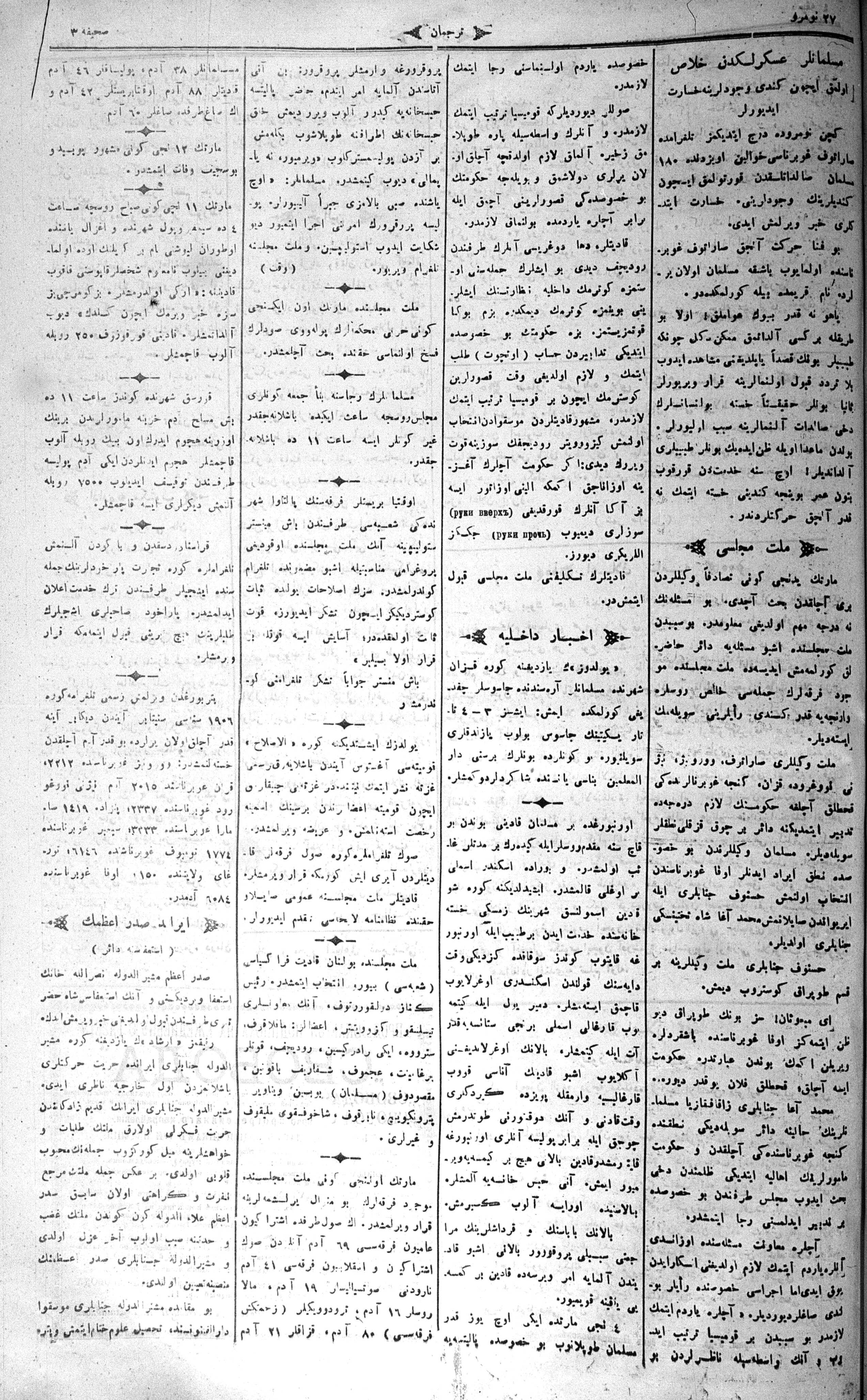 The name of the newspaper changed to Tercüman-ı Ahval-i Zaman in 1905. In 1909, it started to be published under its first name, Tercüman.