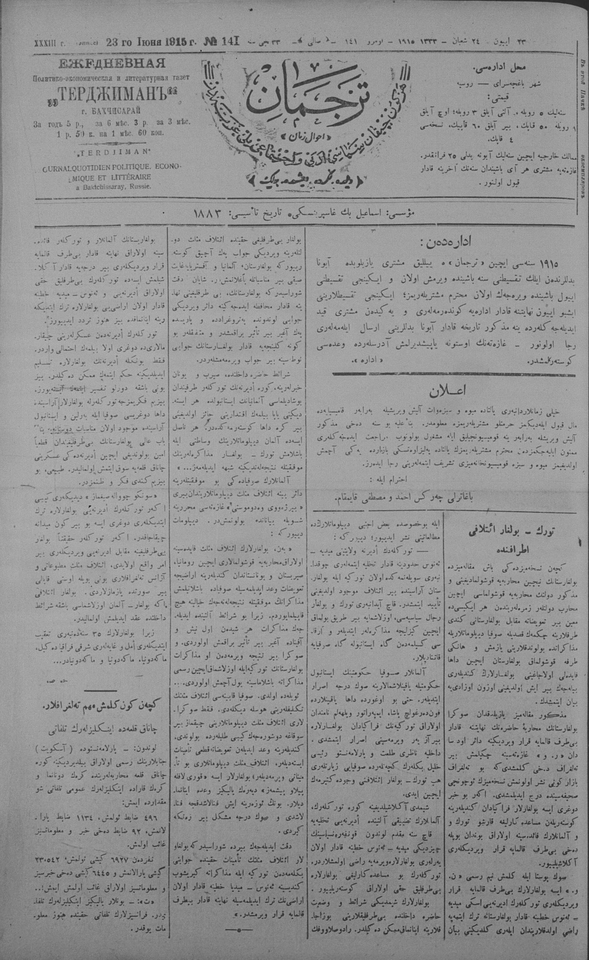 Turkish-Russian newspaper published in Crimea by İsmail Gaspıralı.