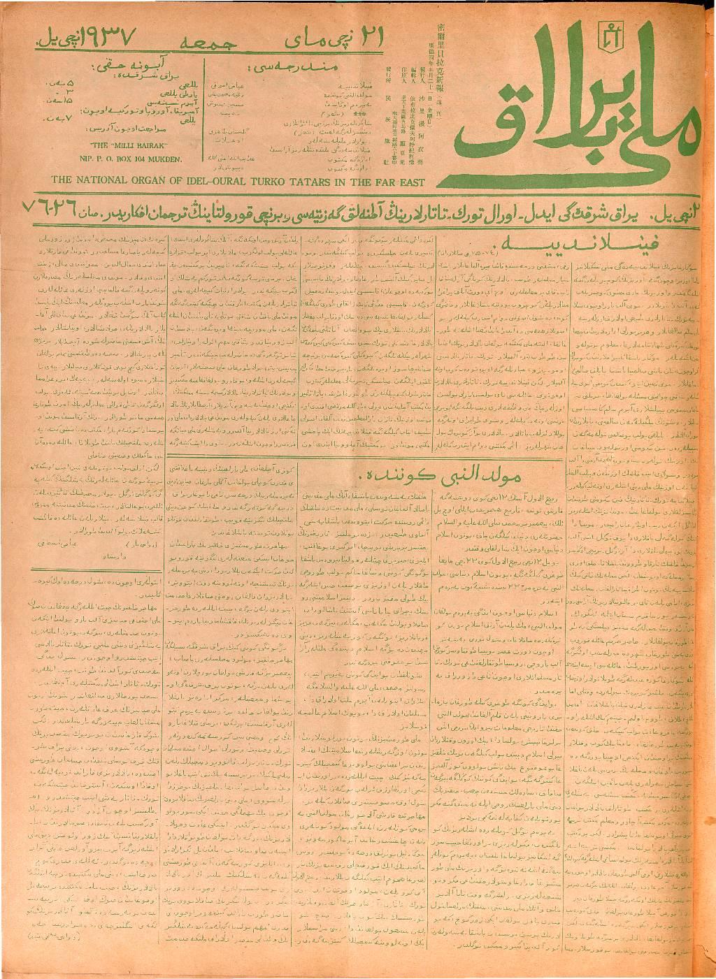 Milli Bayrak, 21 May 1937 Year 2 No 76-26