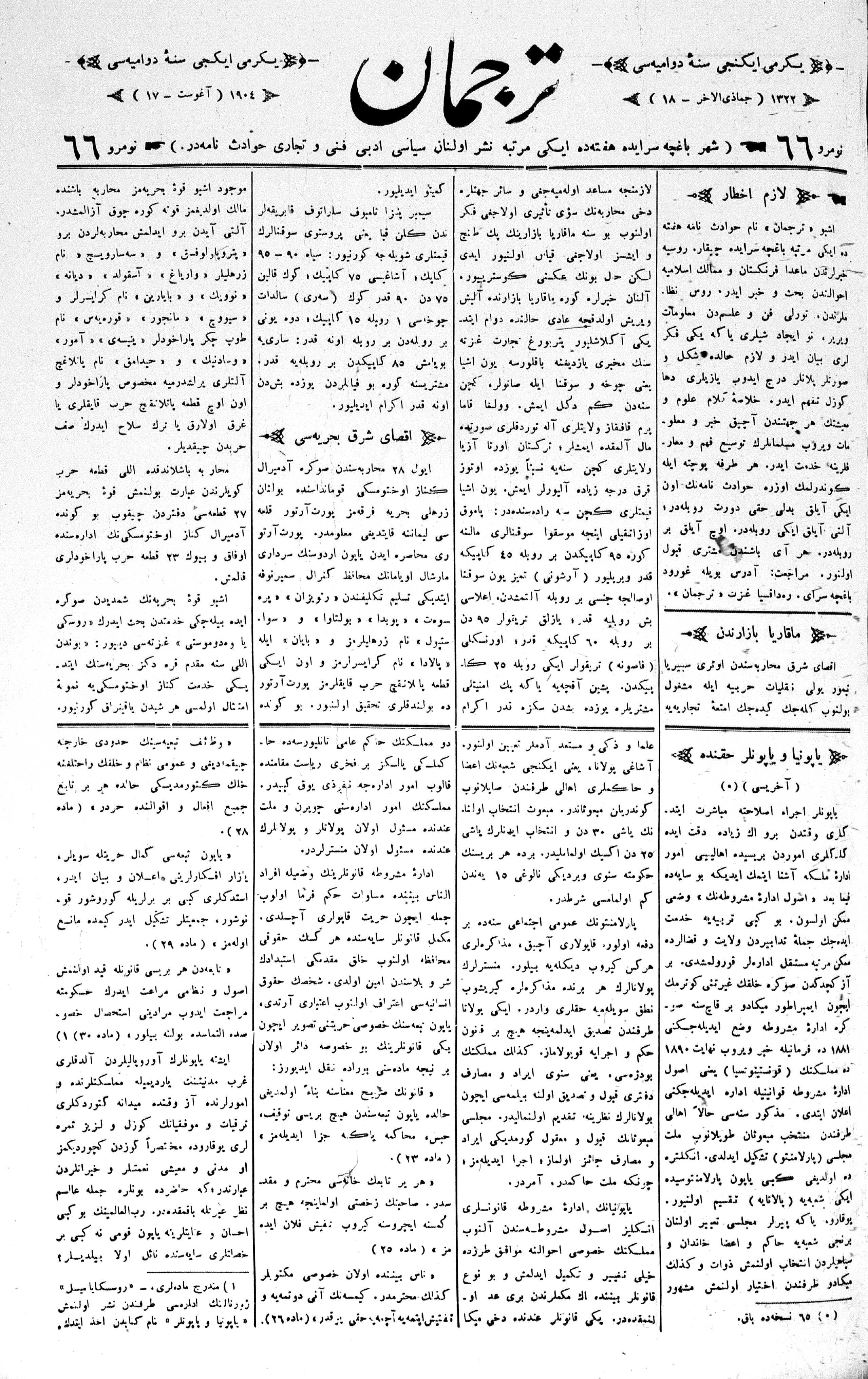 The name of the newspaper changed to Tercüman-ı Ahval-i Zaman in 1905. In 1909, it started to be published under its first name, Tercüman.