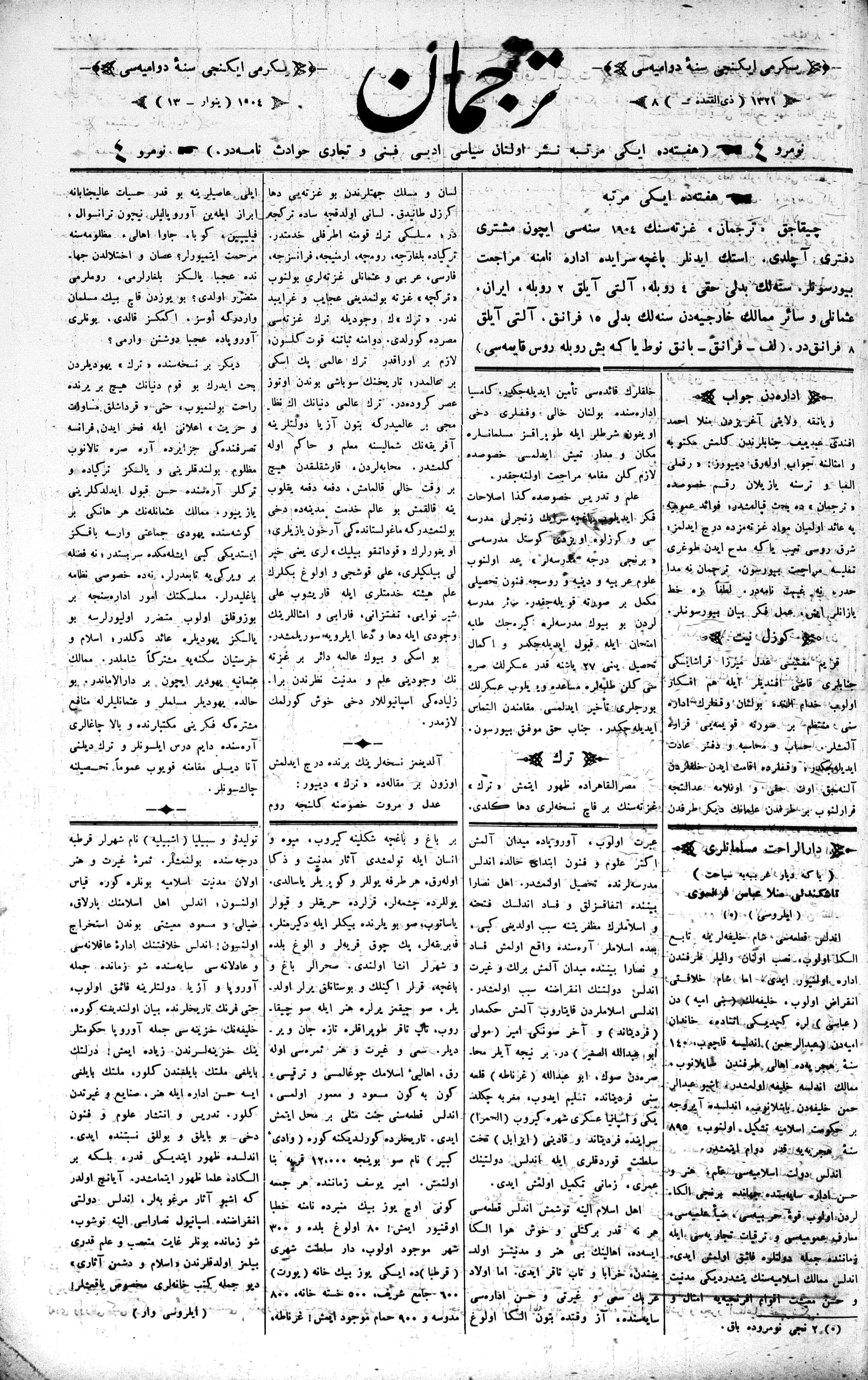 The name of the newspaper changed to Tercüman-ı Ahval-i Zaman in 1905. In 1909, it started to be published under its first name, Tercüman.