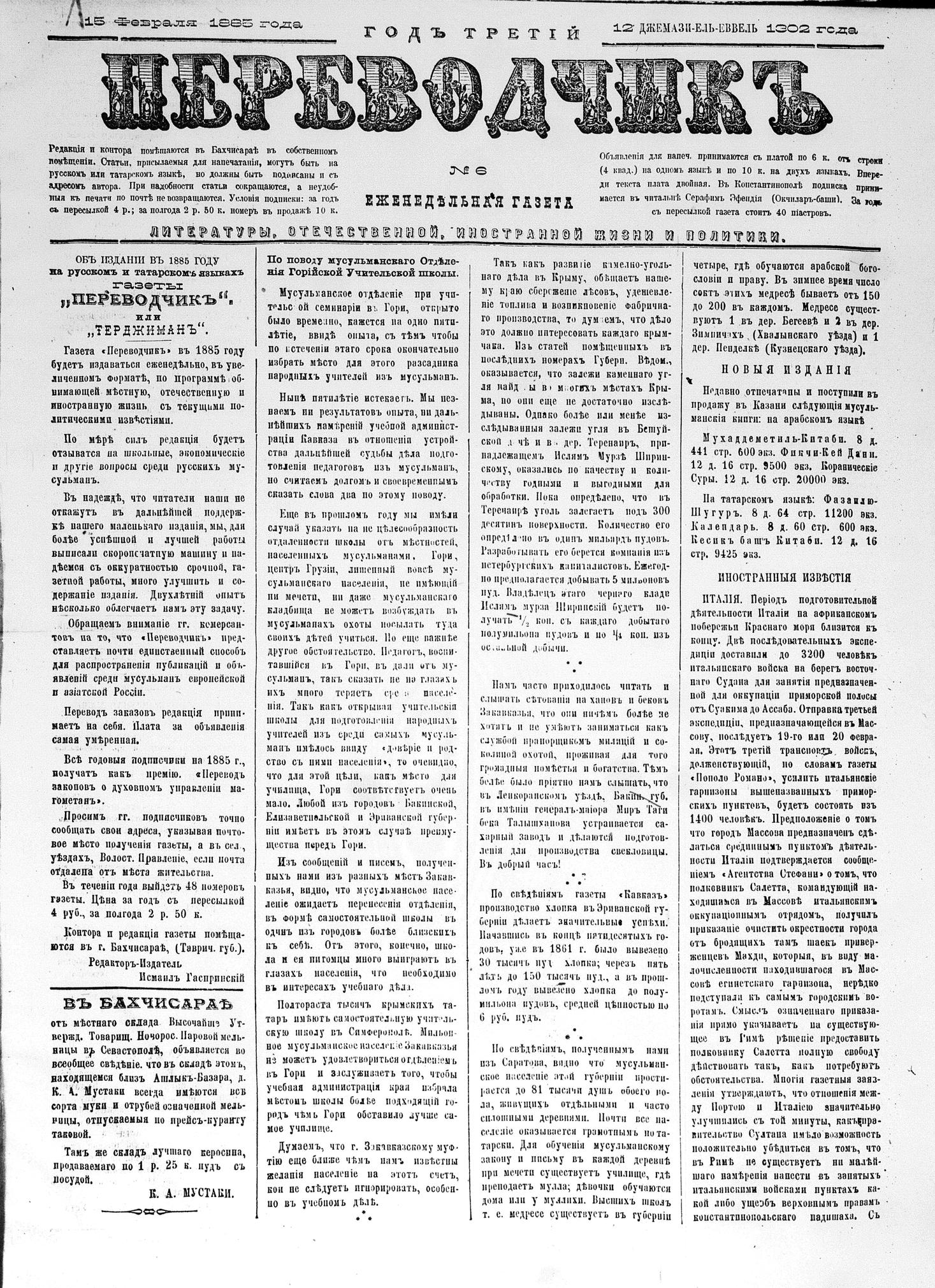 Turkish-Russian newspaper published in Crimea by Gaspirali Ismail Bey.