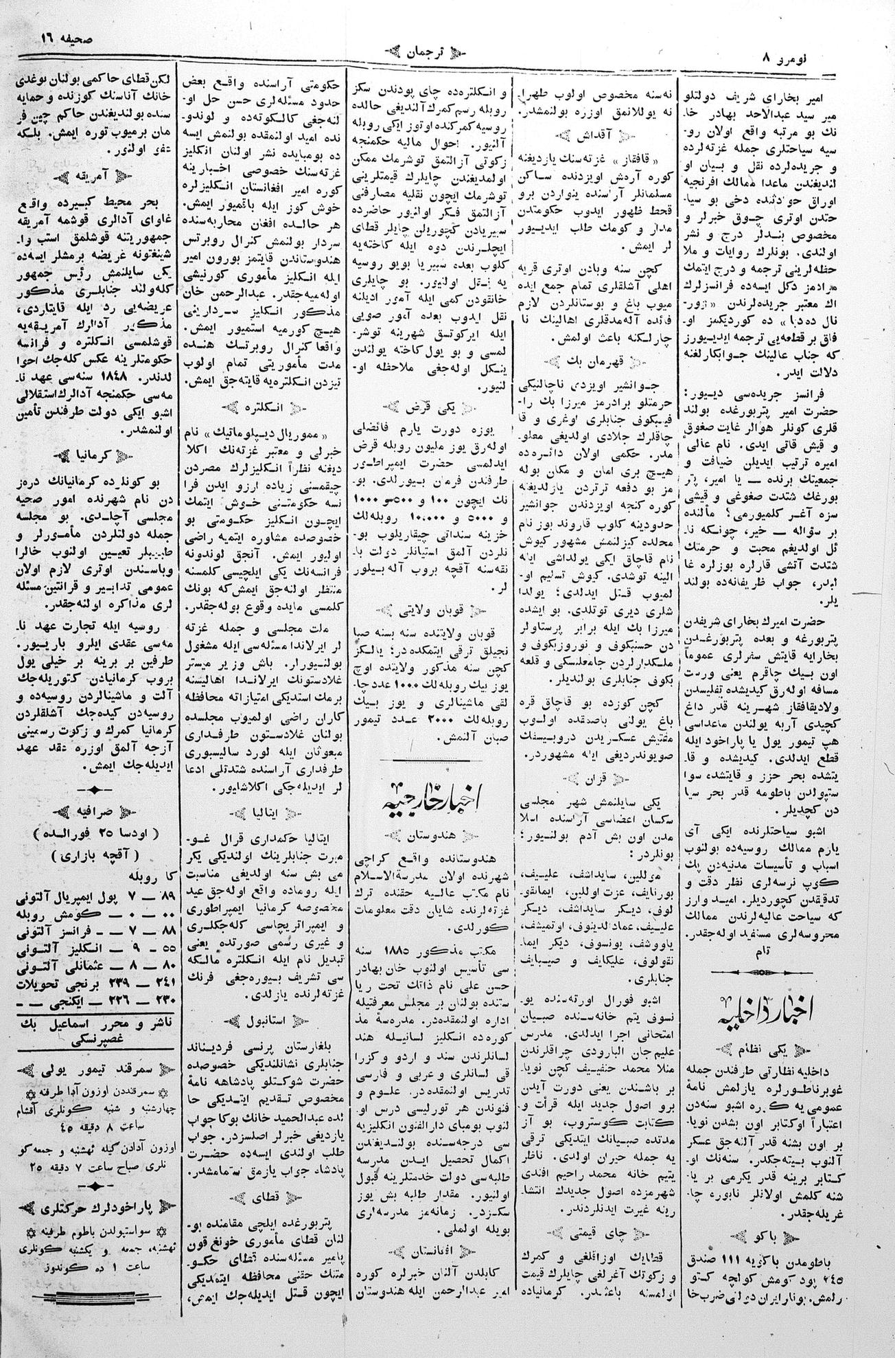 The name of the newspaper changed to Tercüman-ı Ahval-i Zaman in 1905. In 1909, it started to be published under its first name, Tercüman.