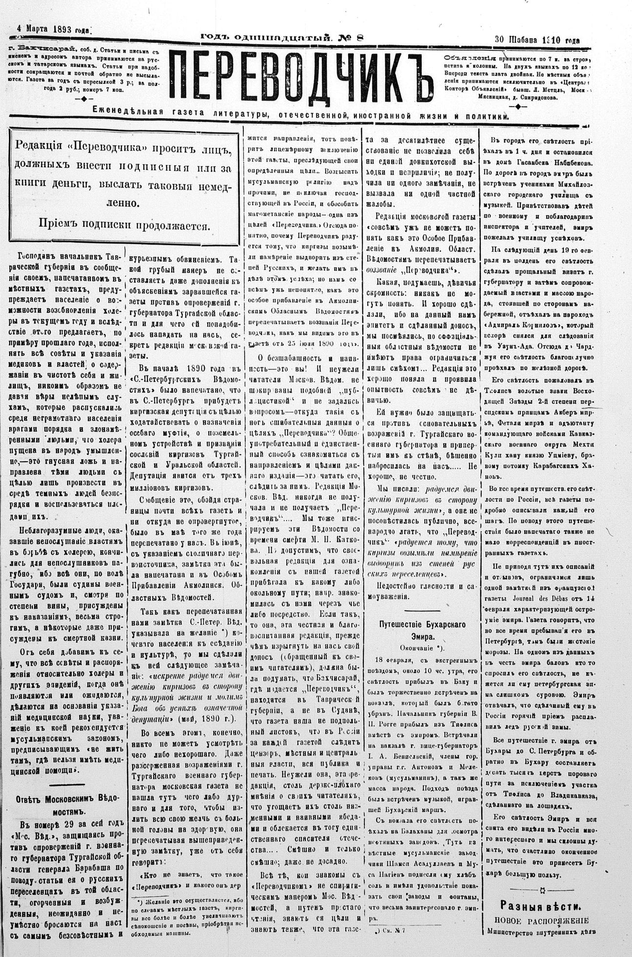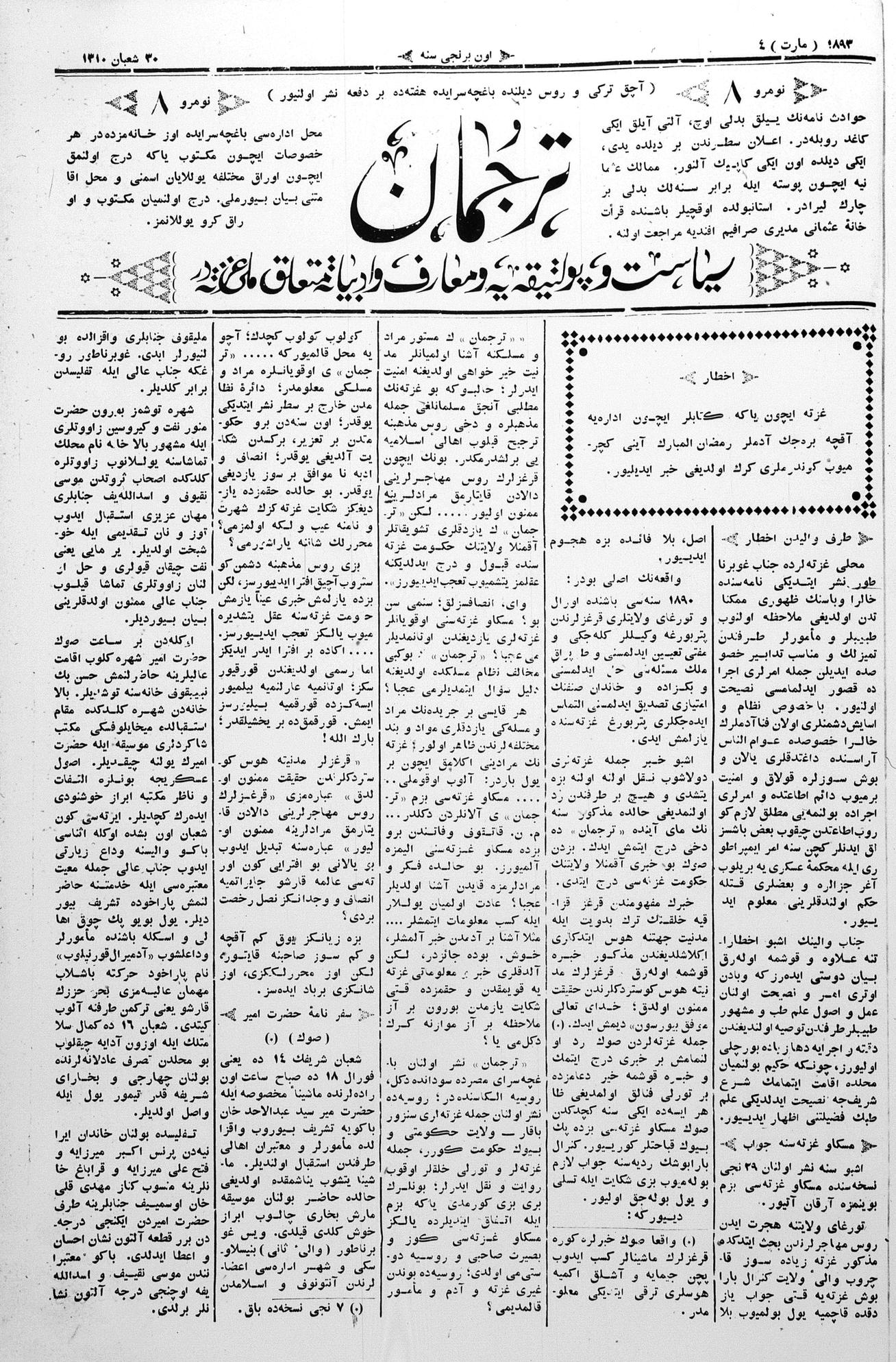 Tercüman, 04 March 1893 Year 11 No 8