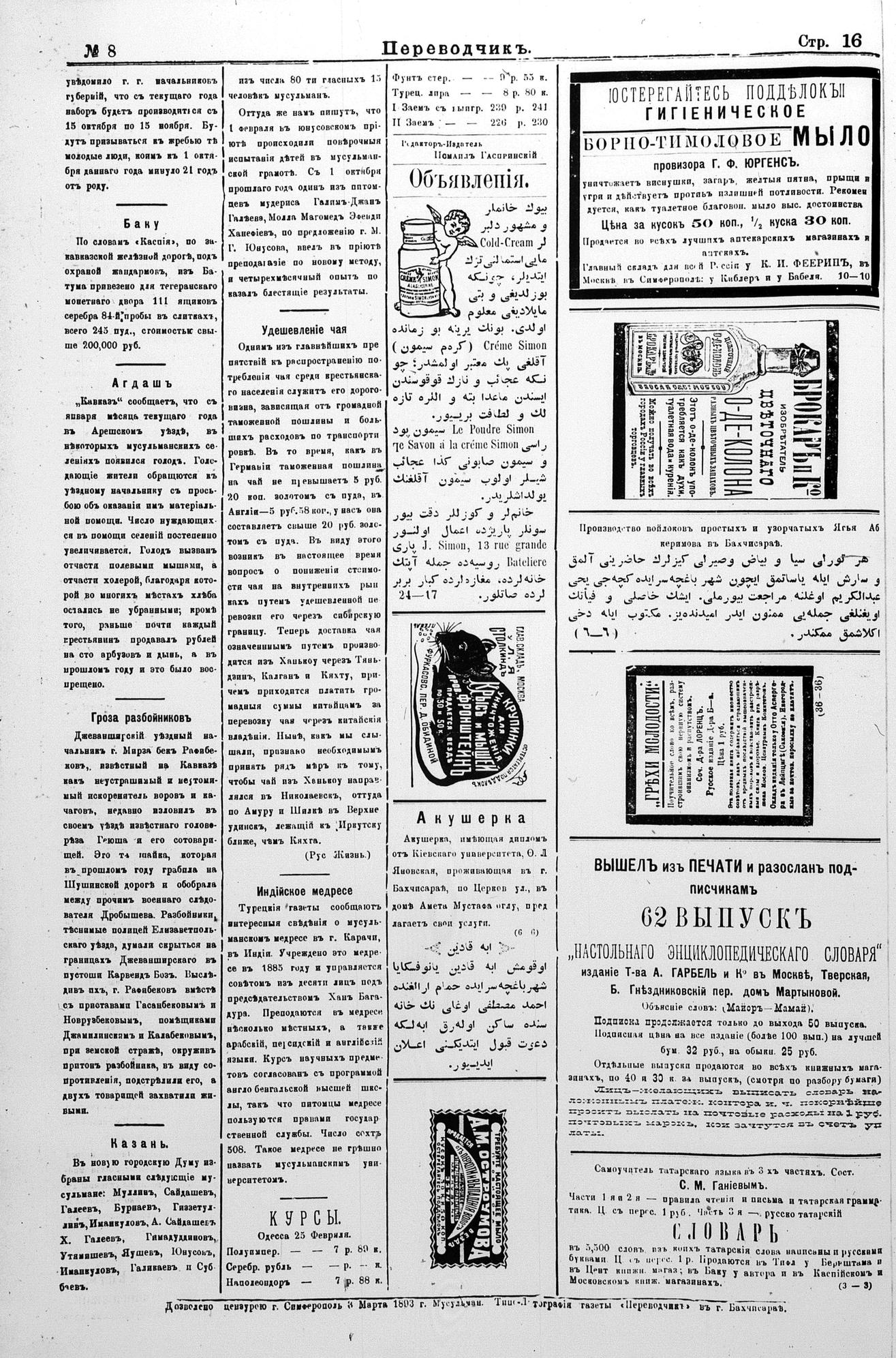 Turkish-Russian newspaper published in Crimea by İsmail Gaspıralı.