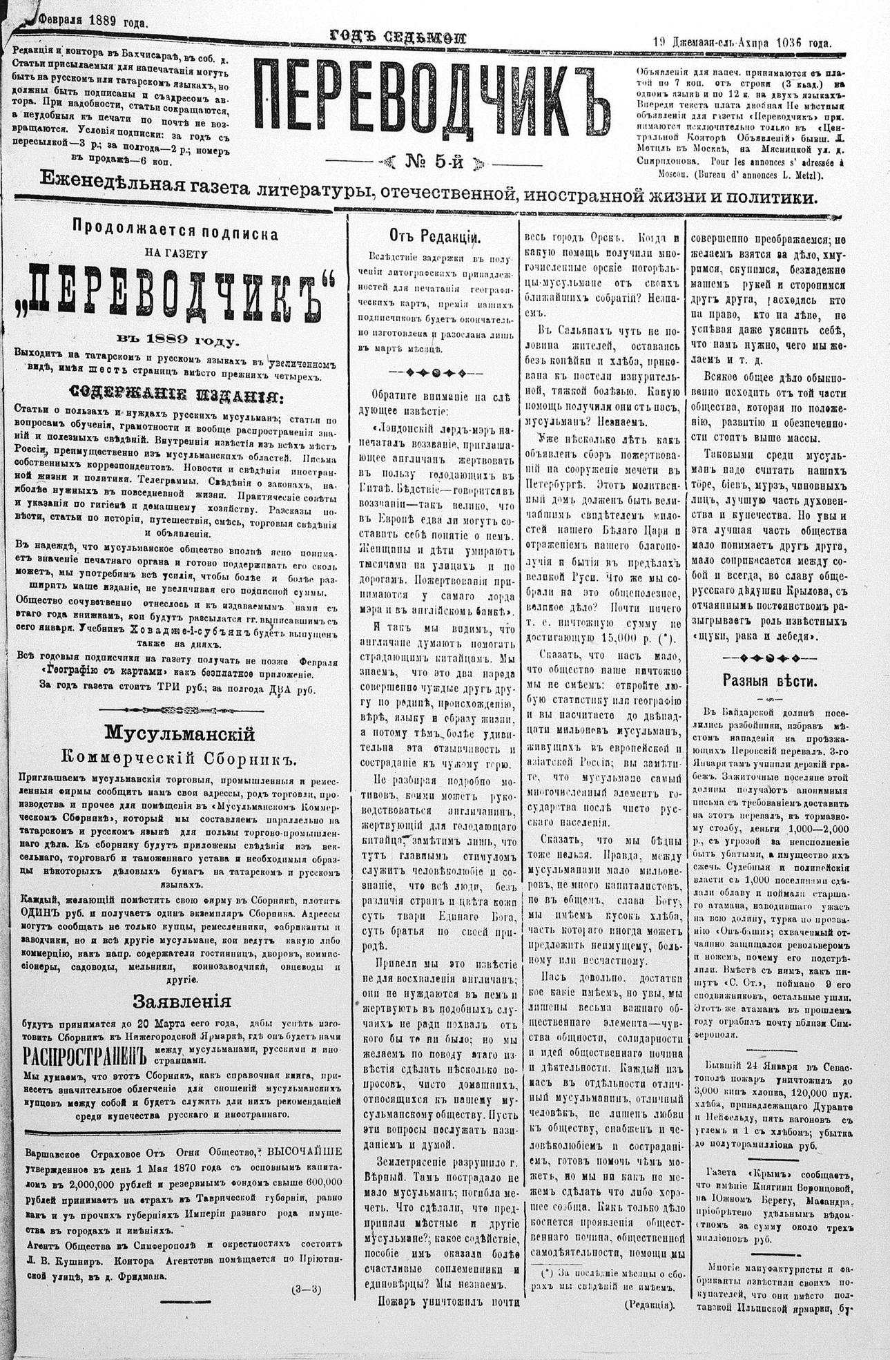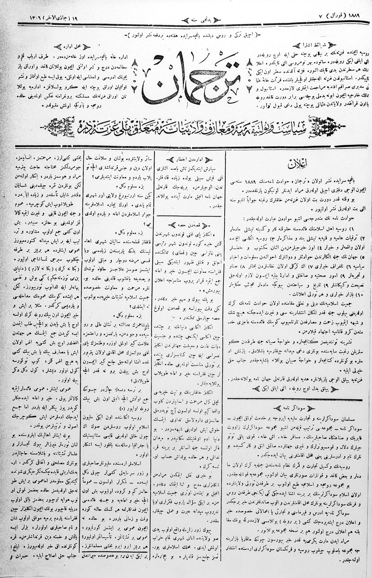 Tercüman, 07 February 1889 Year 7 No 5