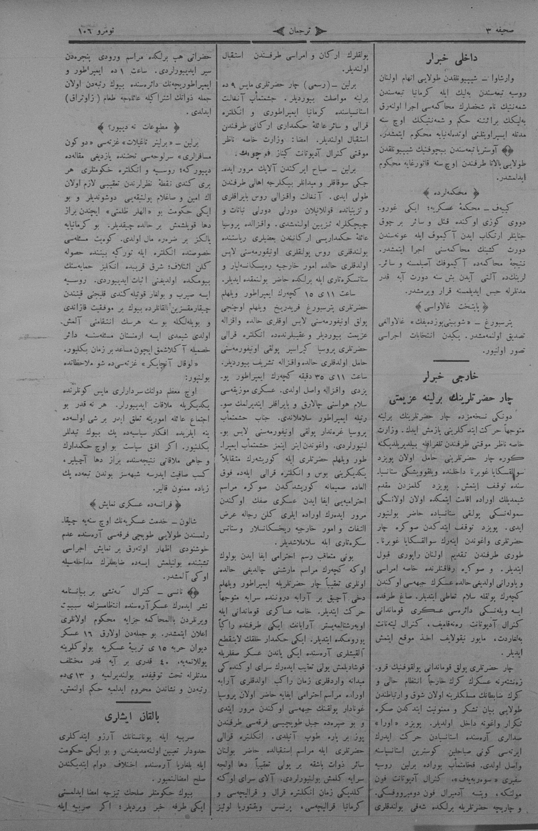 The name of the newspaper changed to Tercüman-ı Ahval-i Zaman in 1905. In 1909, it started to be published under its first name, Tercüman.
