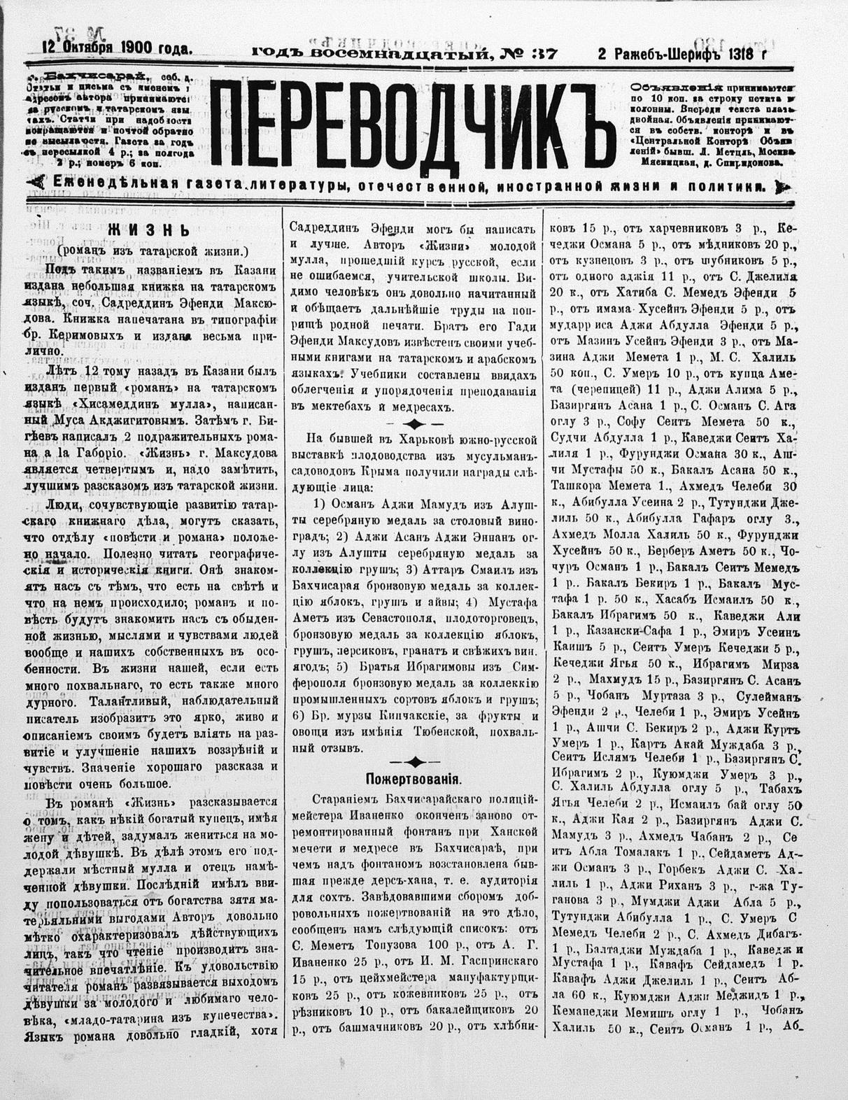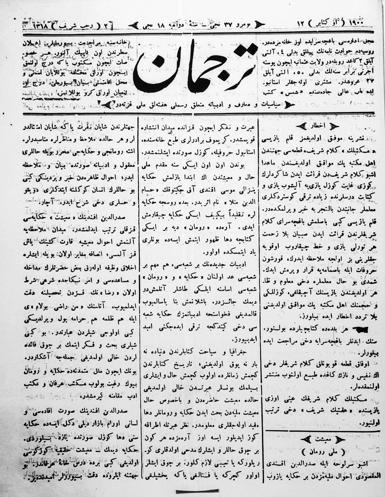 Tercüman, 12 October 1900 Year 18 No 37