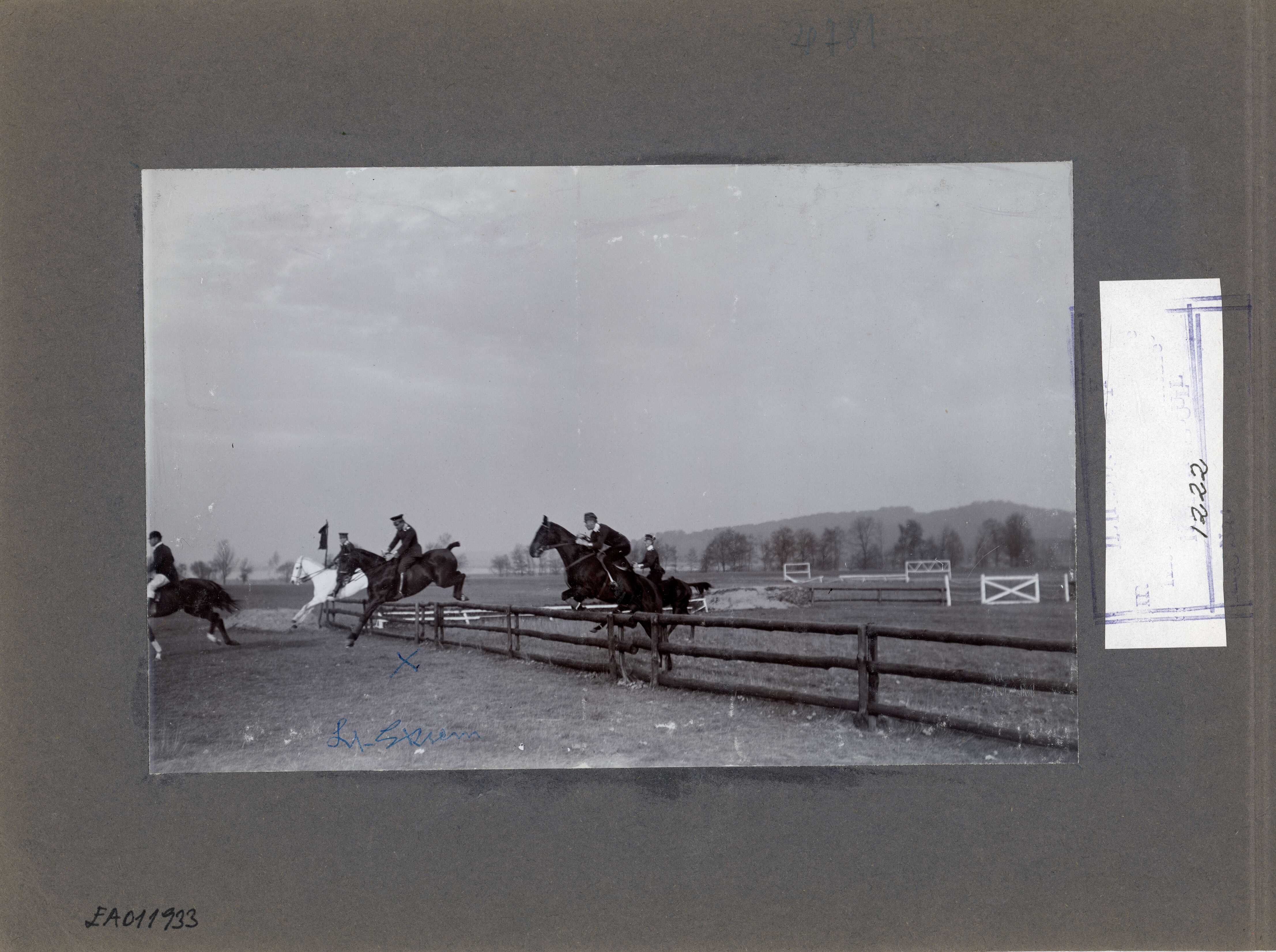 Potsdam civarında Bornim'de yarışta Ekrem Rüştü Akömer ve Alman süvariler bir engeli geçerken
