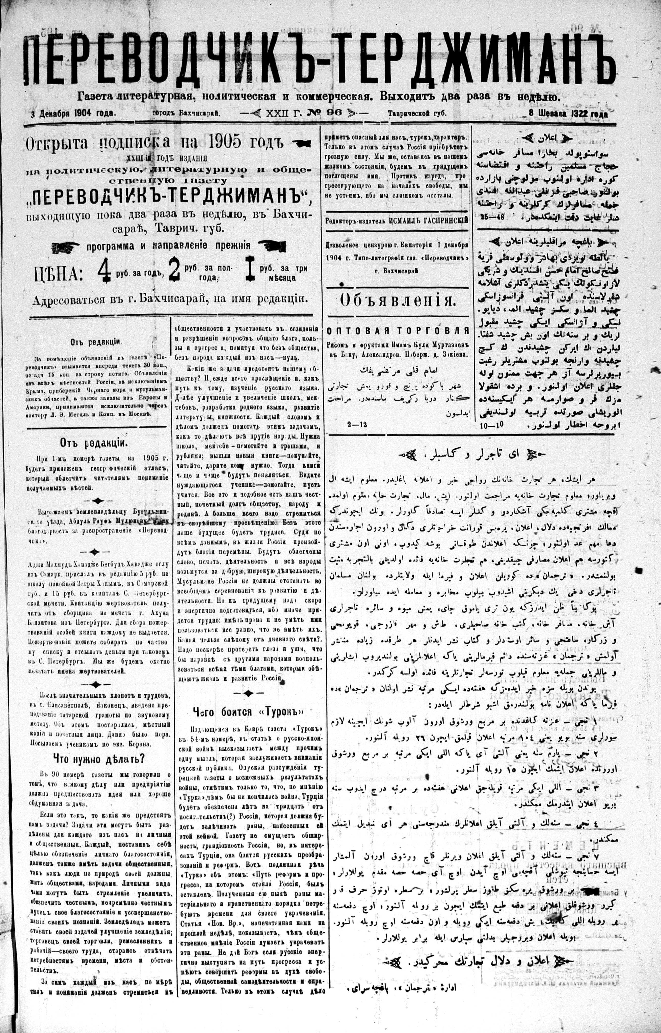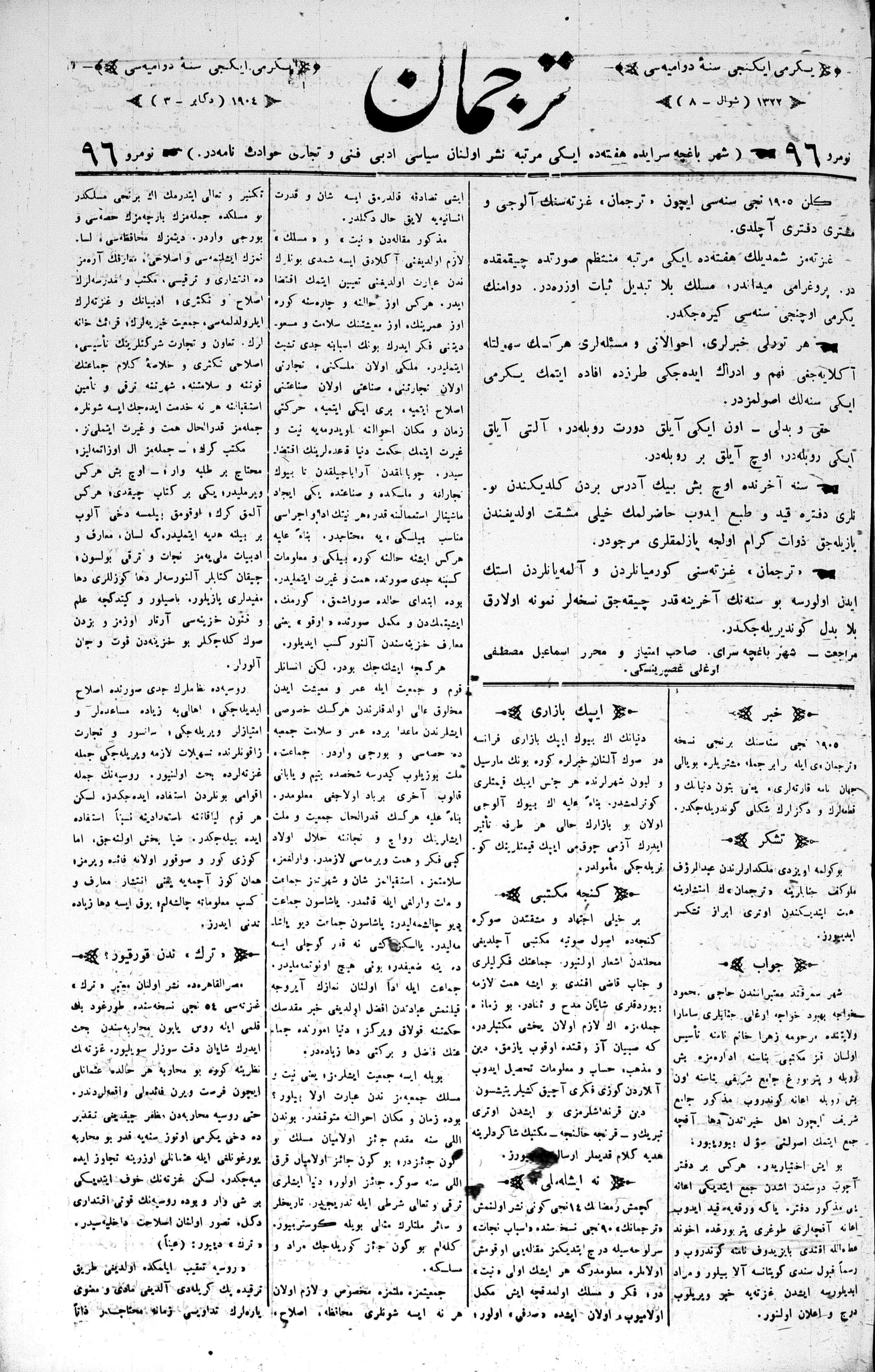 Turkish-Russian newspaper published in Crimea by İsmail Gaspıralı.