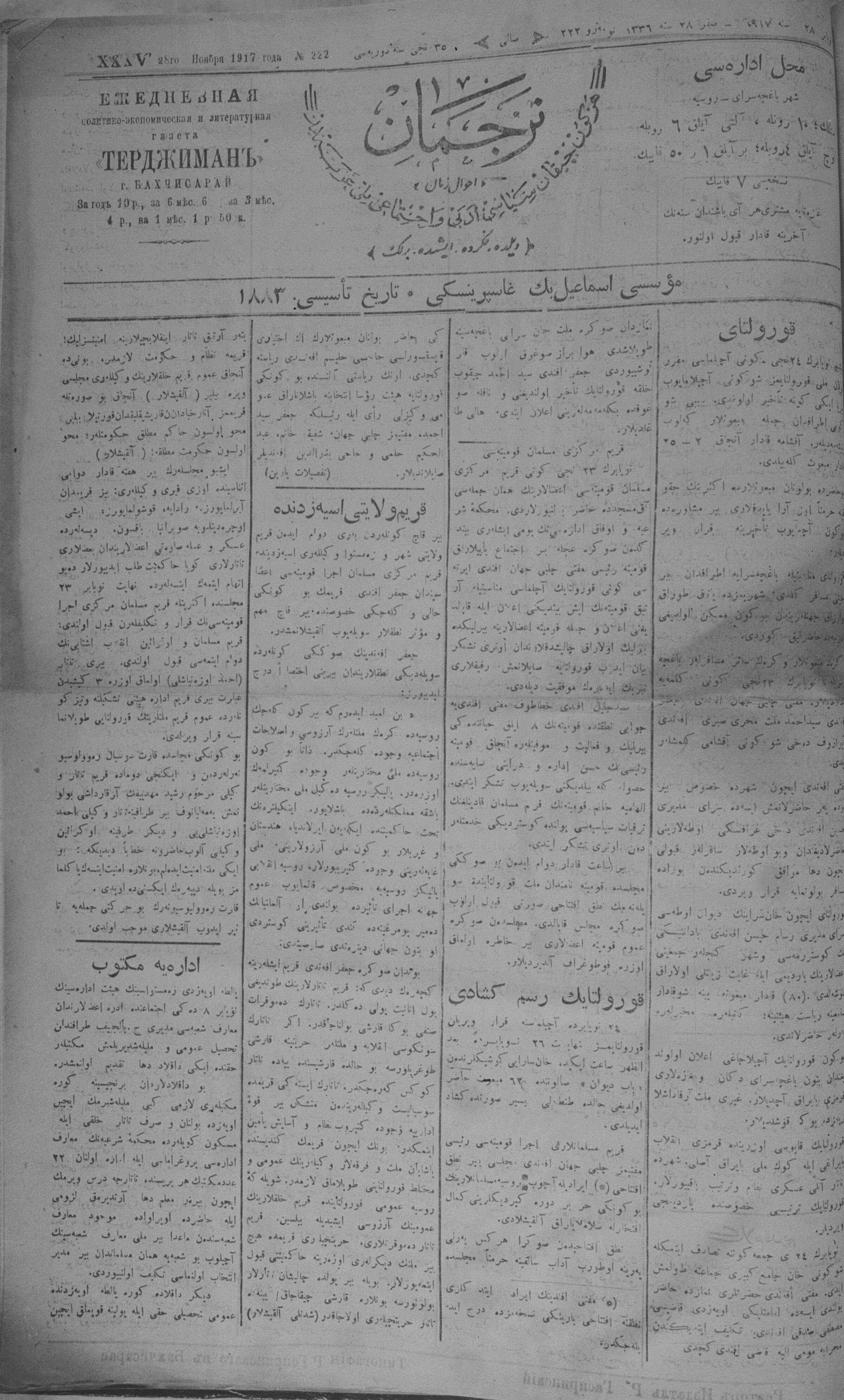 Turkish-Russian newspaper published in Crimea by İsmail Gaspıralı.