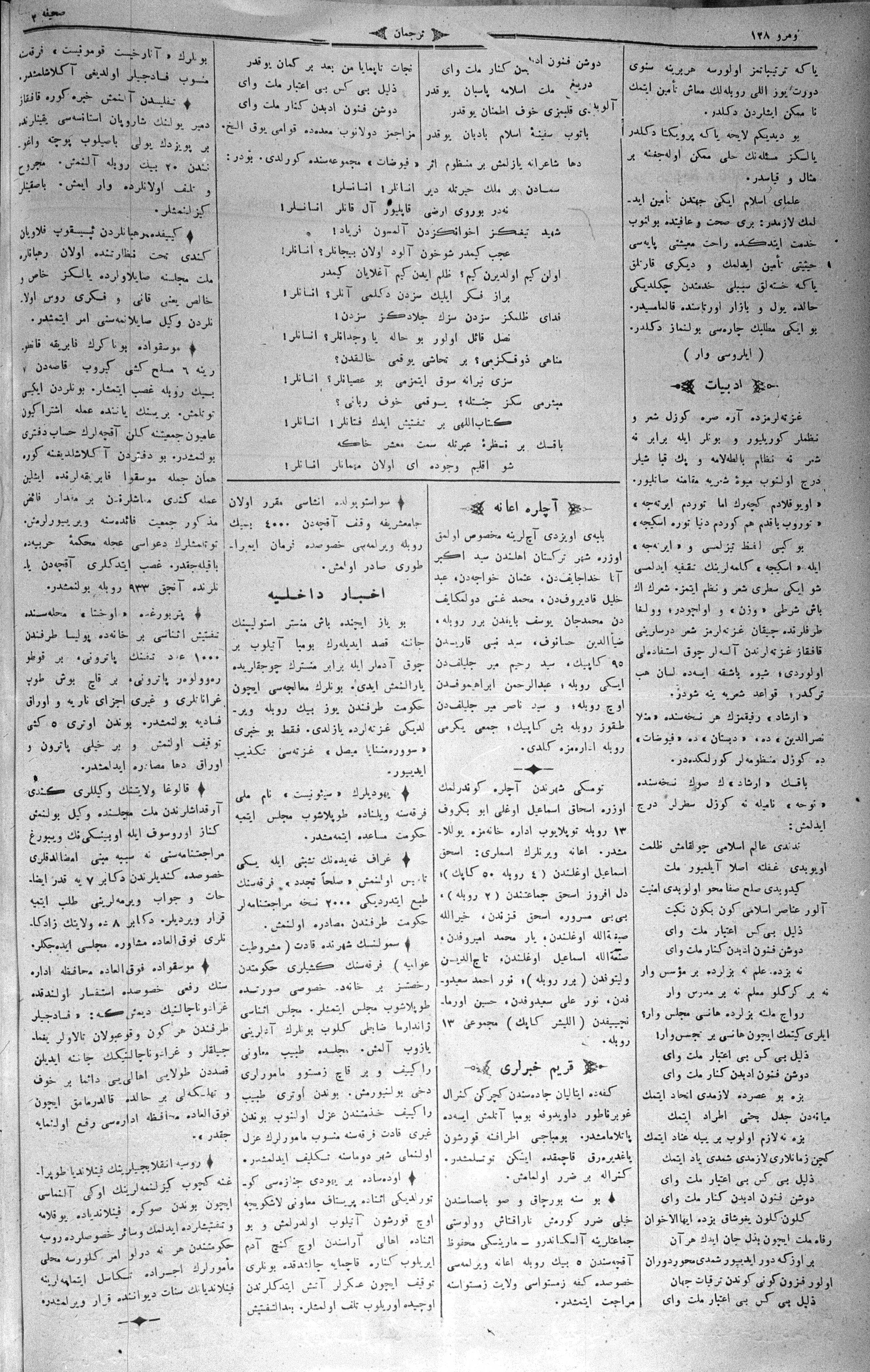 The name of the newspaper changed to Tercüman-ı Ahval-i Zaman in 1905. In 1909, it started to be published under its first name, Tercüman.