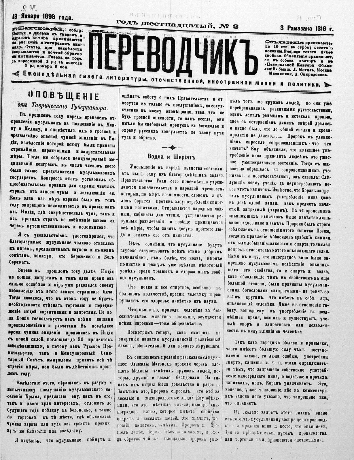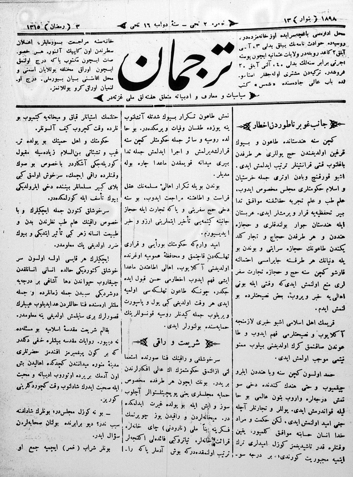 Tercüman, 13 January 1898 Year 16 No 2