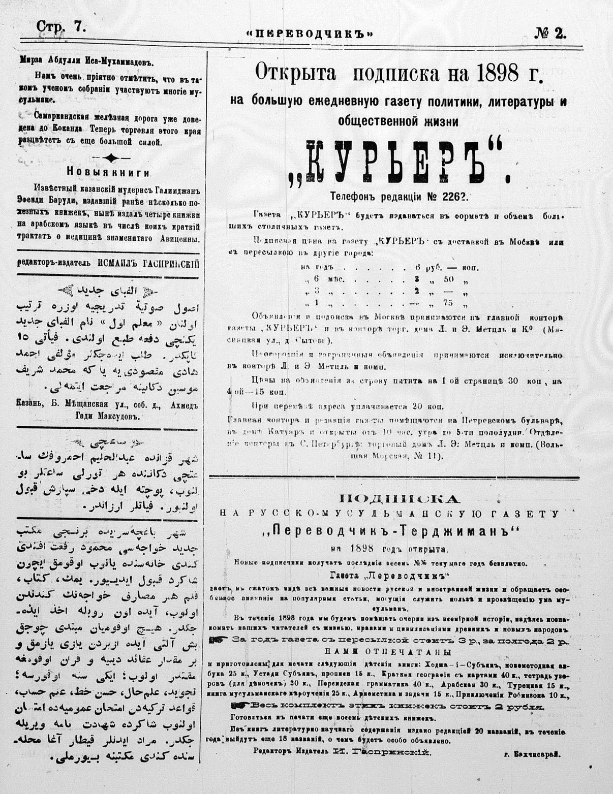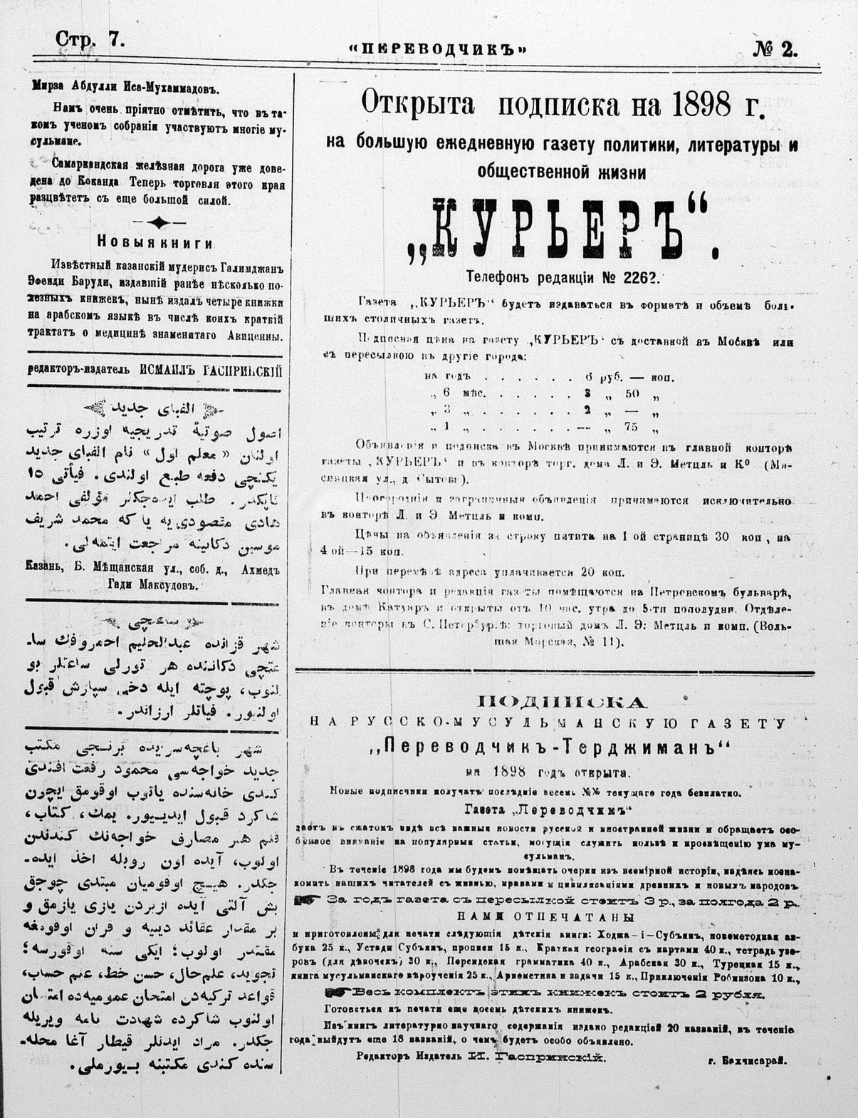 Turkish-Russian newspaper published in Crimea by İsmail Gaspıralı.