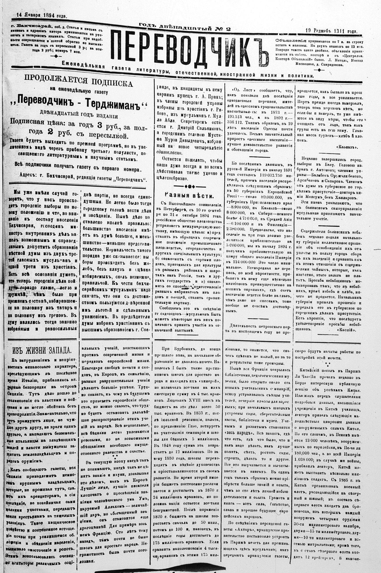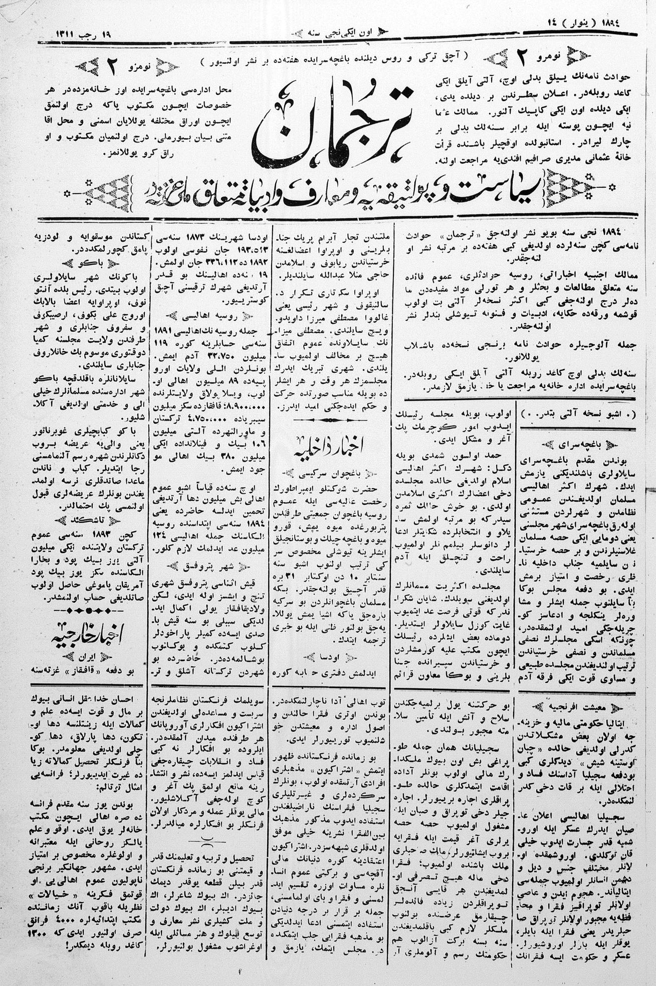 Tercüman, 14 January 1894 Year 12 No 2