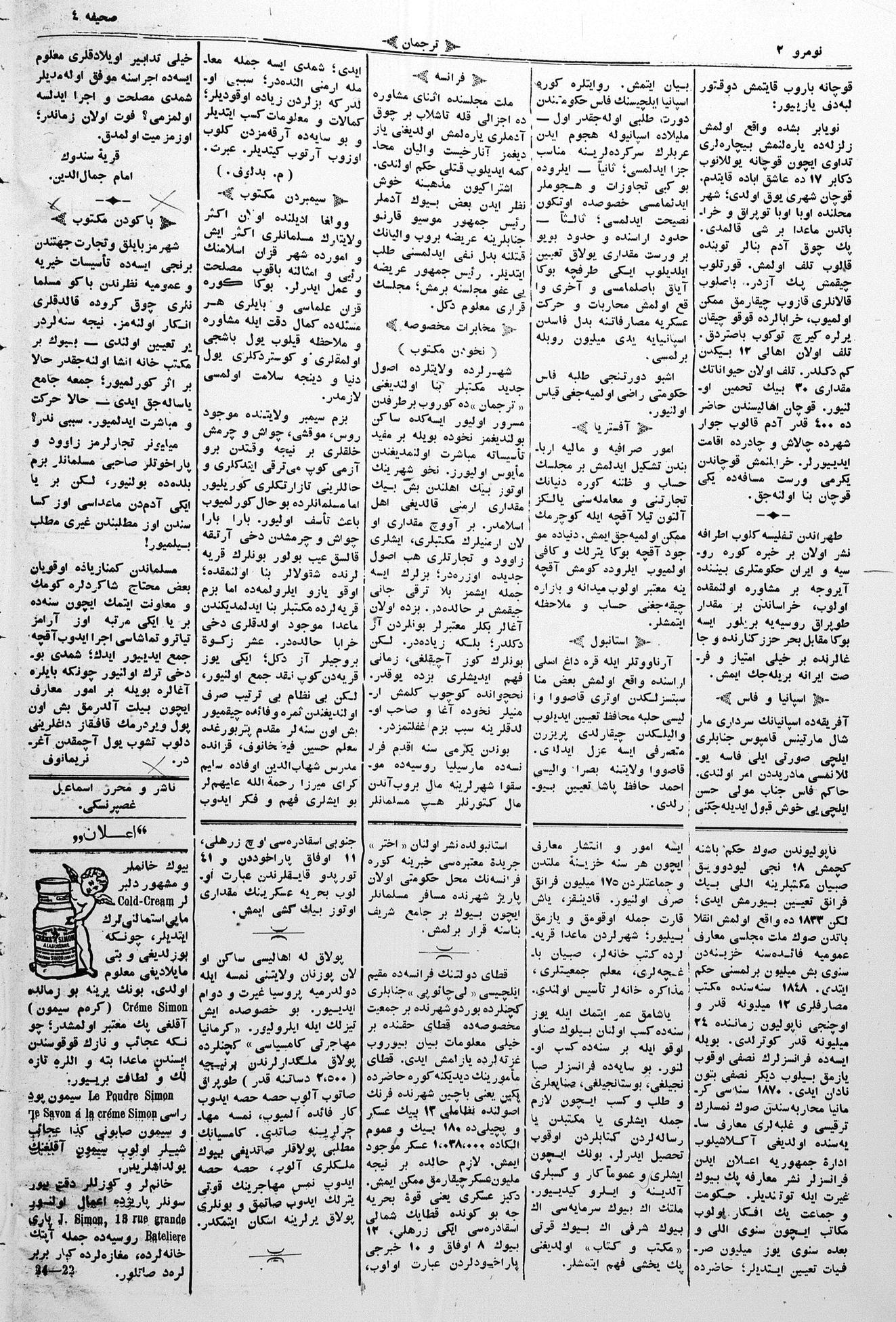 Turkish-Russian newspaper published in Crimea by İsmail Gaspıralı.
