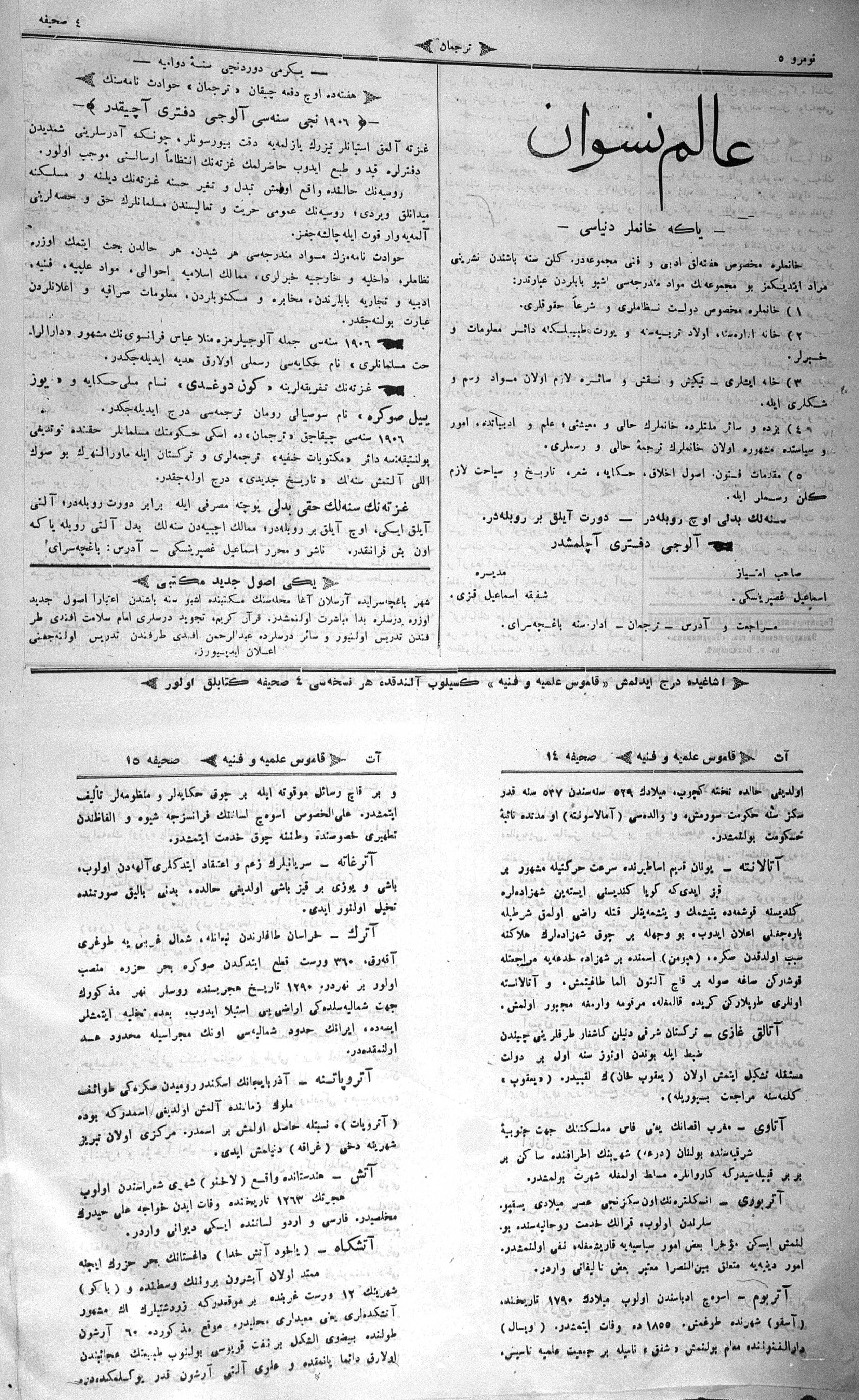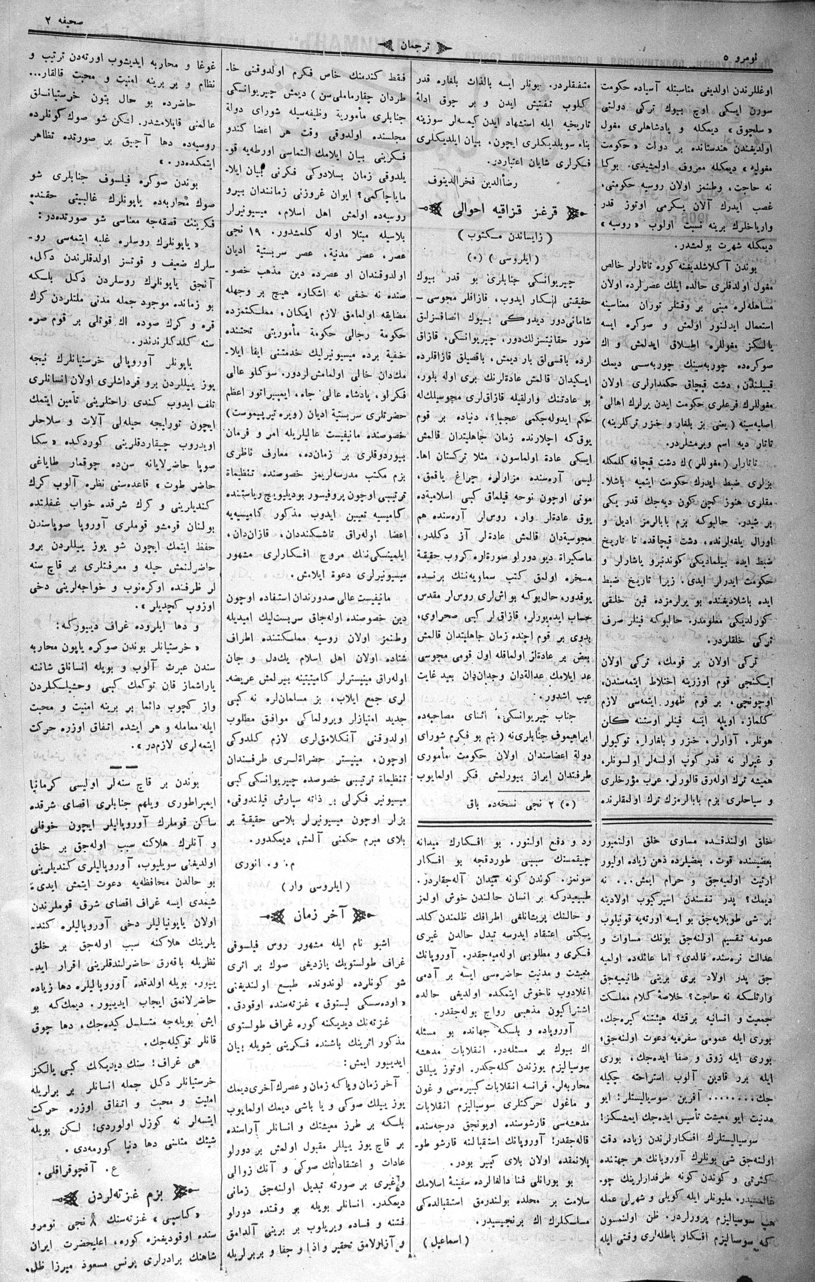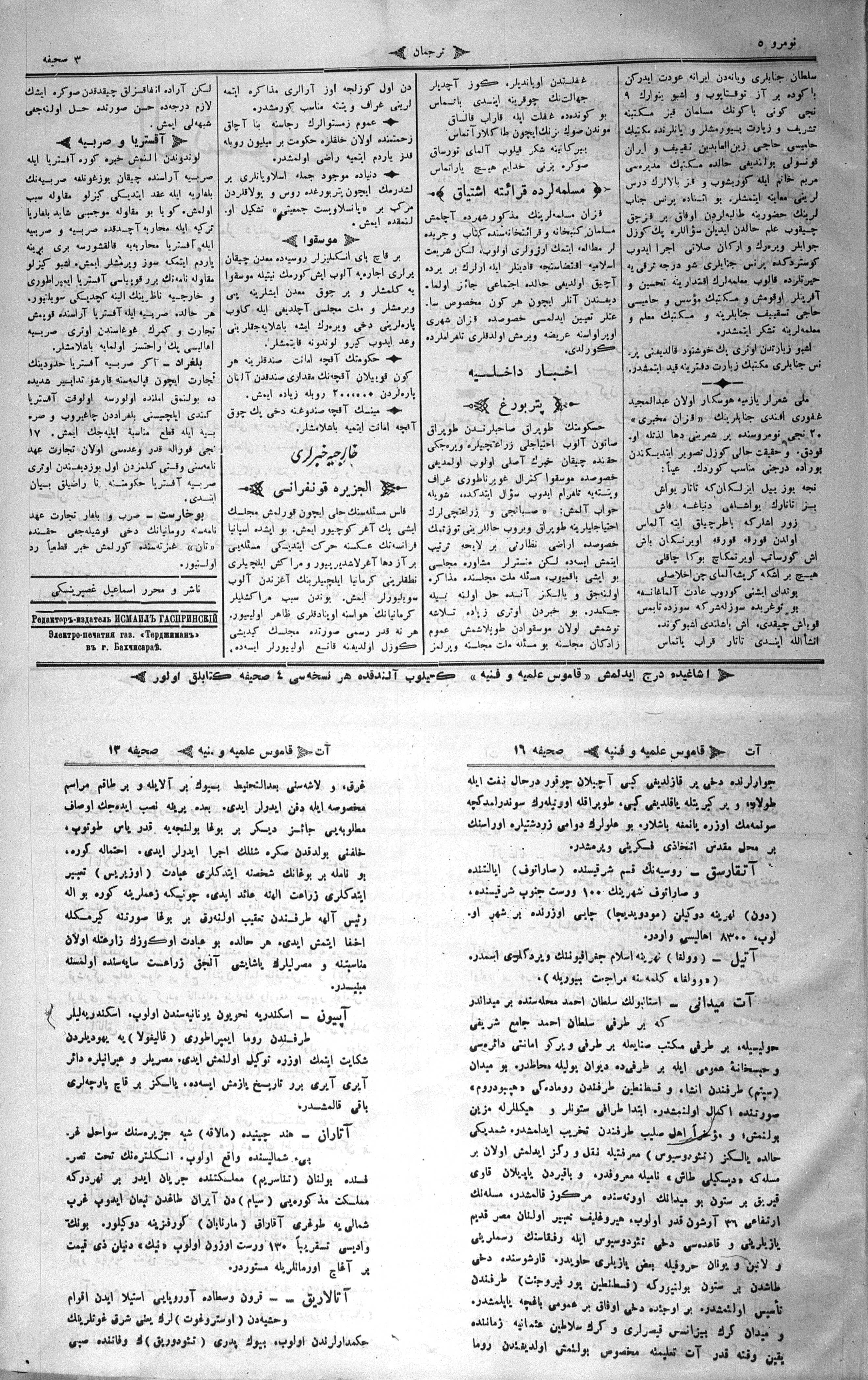 Turkish-Russian newspaper published in Crimea by İsmail Gaspıralı.