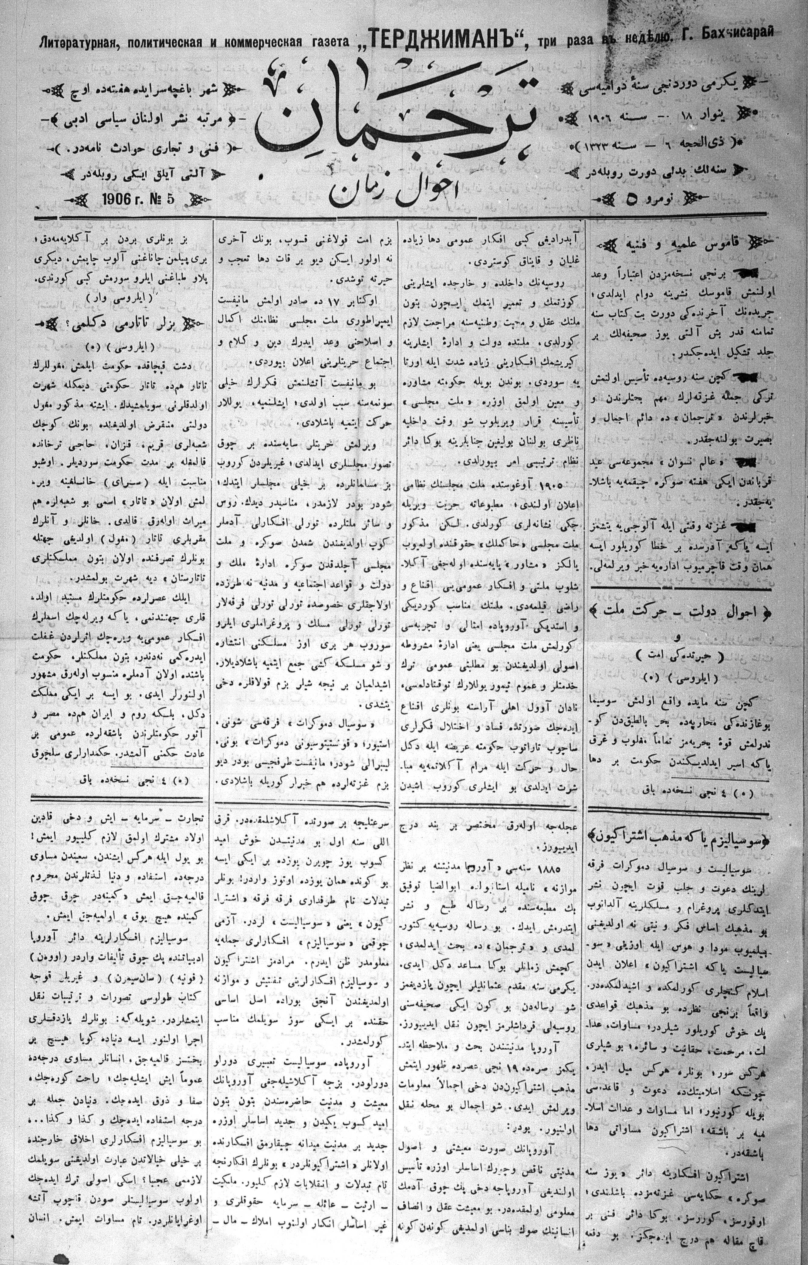 Tercüman, 18 January 1906 Year 24 No 5