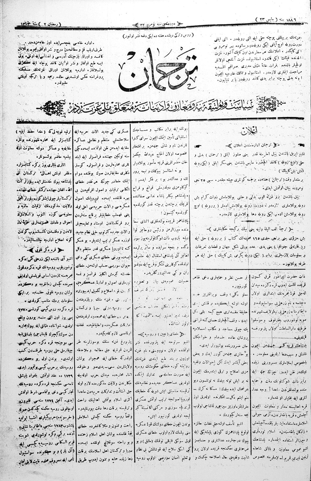The name of the newspaper changed to Tercüman-ı Ahval-i Zaman in 1905. In 1909, it started to be published under its first name, Tercüman.