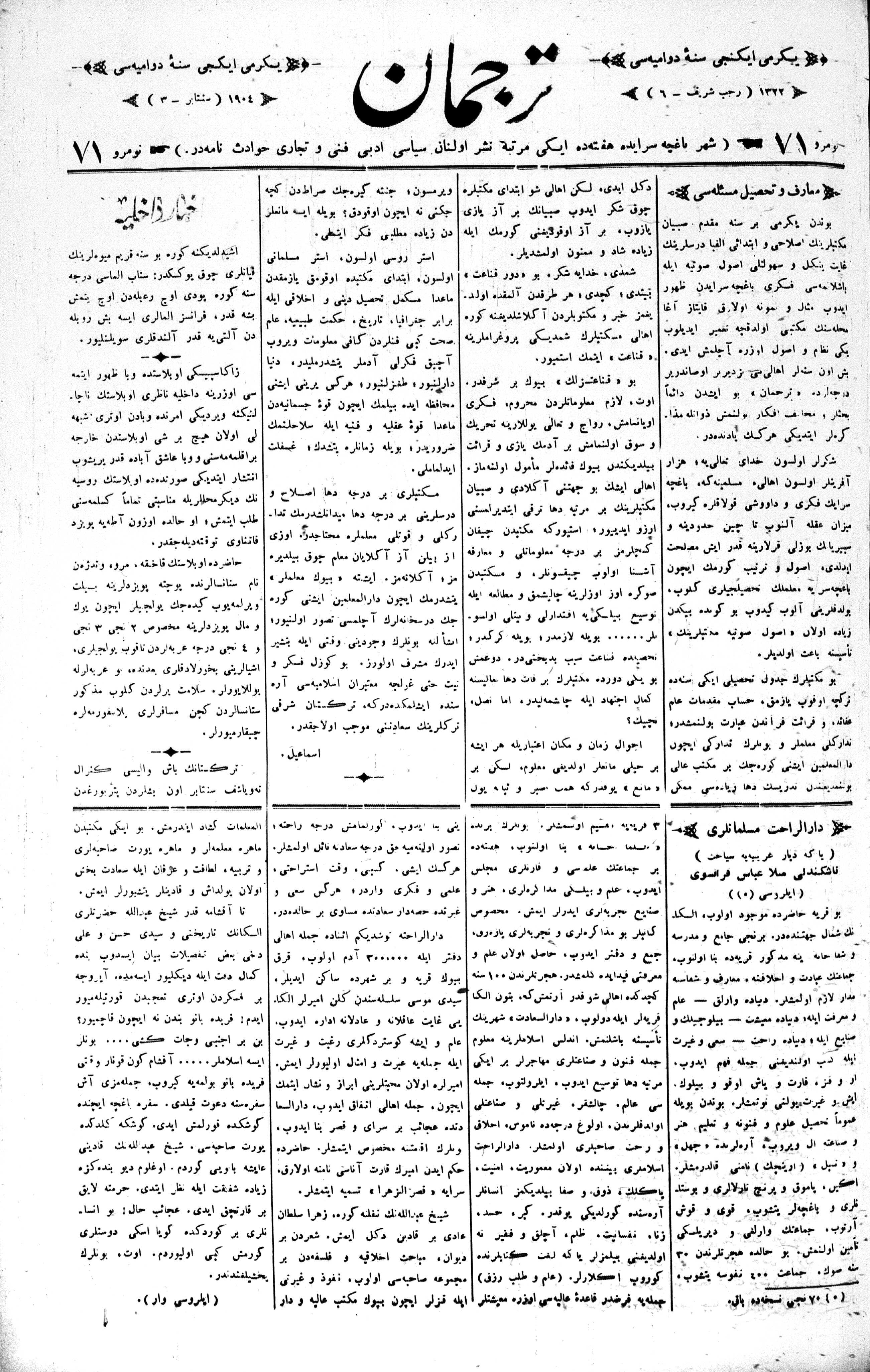 Tercüman, 03 September 1904 Year 22 No 71