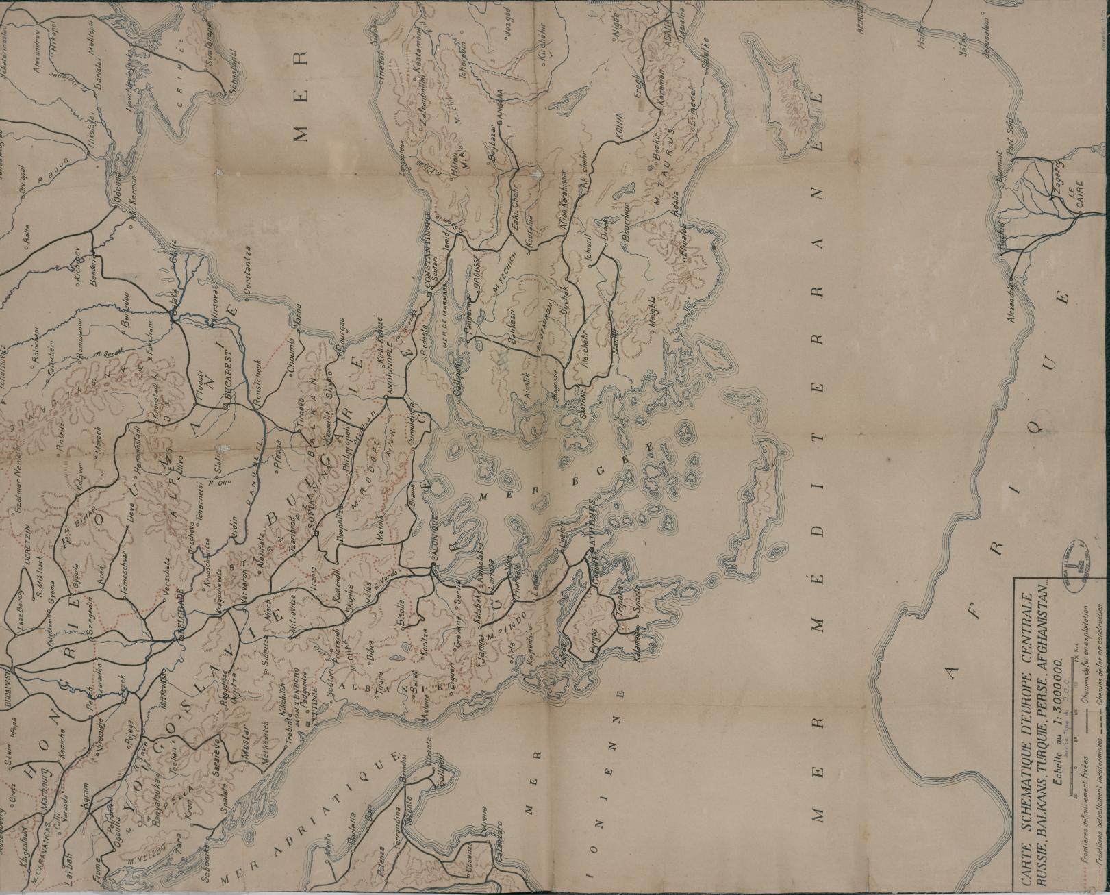 Carte schematique d`Europe Centrale Russie, Balkans, Turquie, Perse, Afghanistan