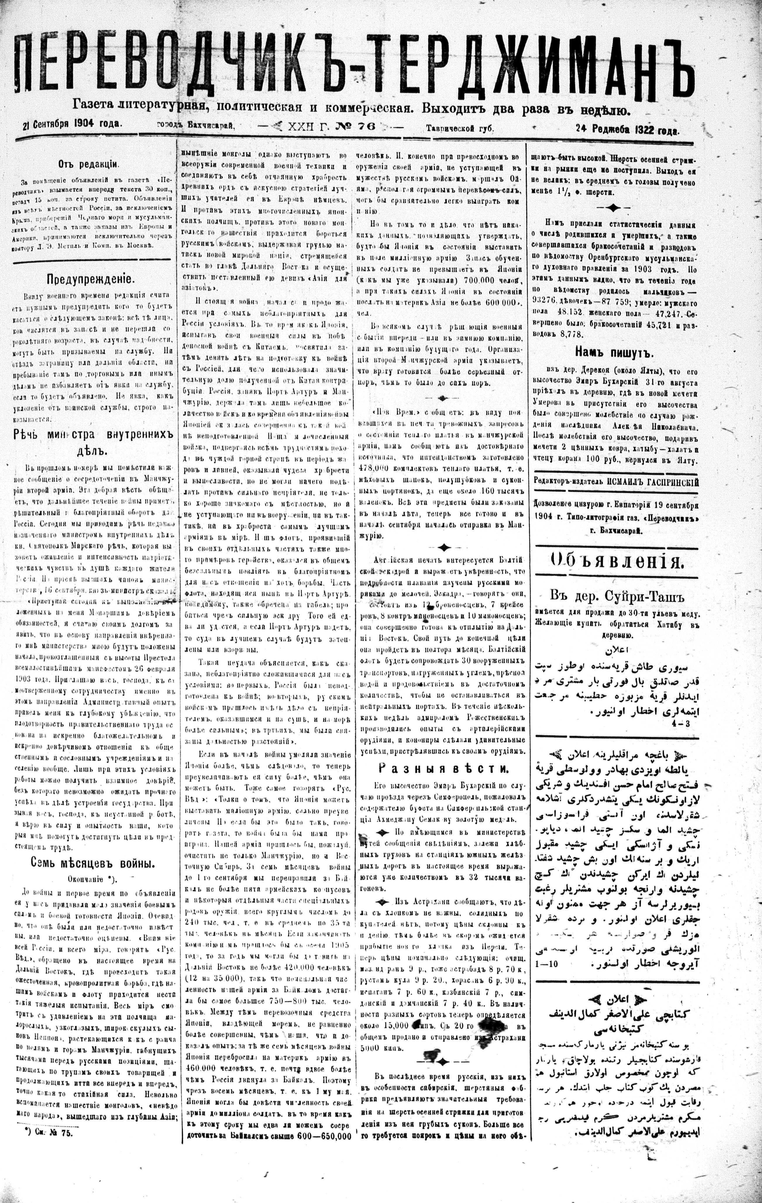Tercüman, 21 September 1904 Year 22 No 76