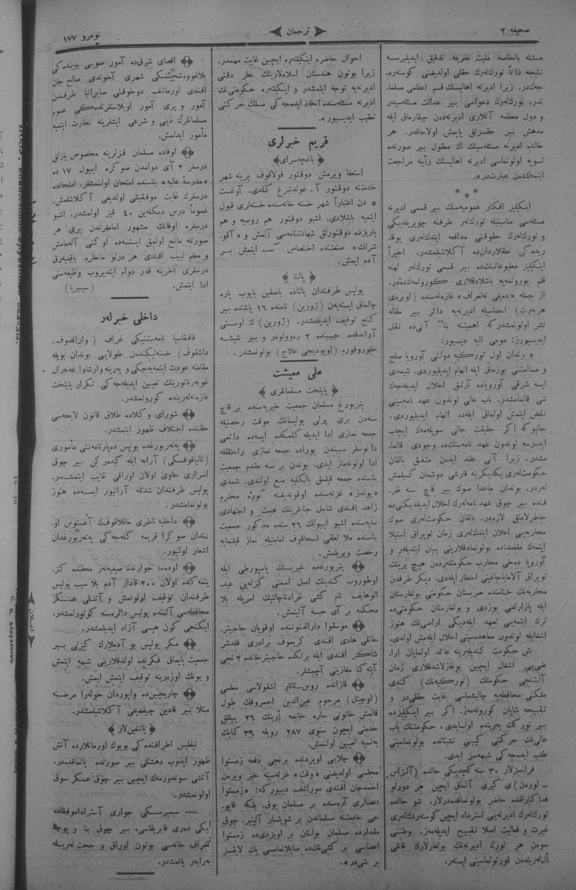 The name of the newspaper changed to Tercüman-ı Ahval-i Zaman in 1905. In 1909, it started to be published under its first name, Tercüman.