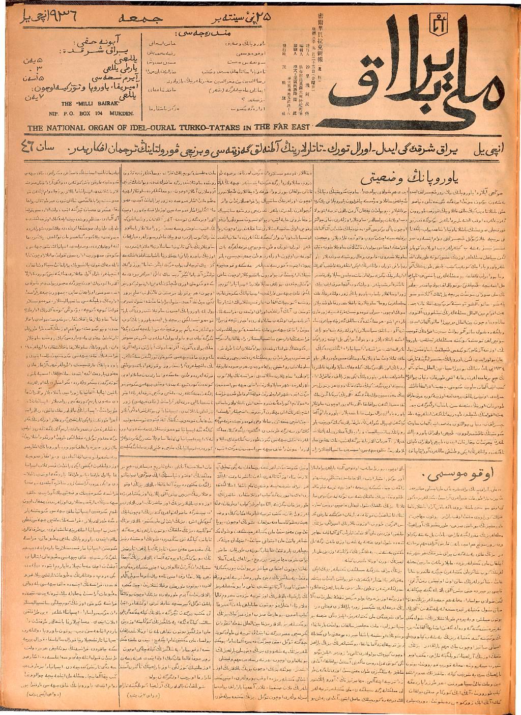 The Milli Bayrak newspaper was written in Tatar with Arabic script.
