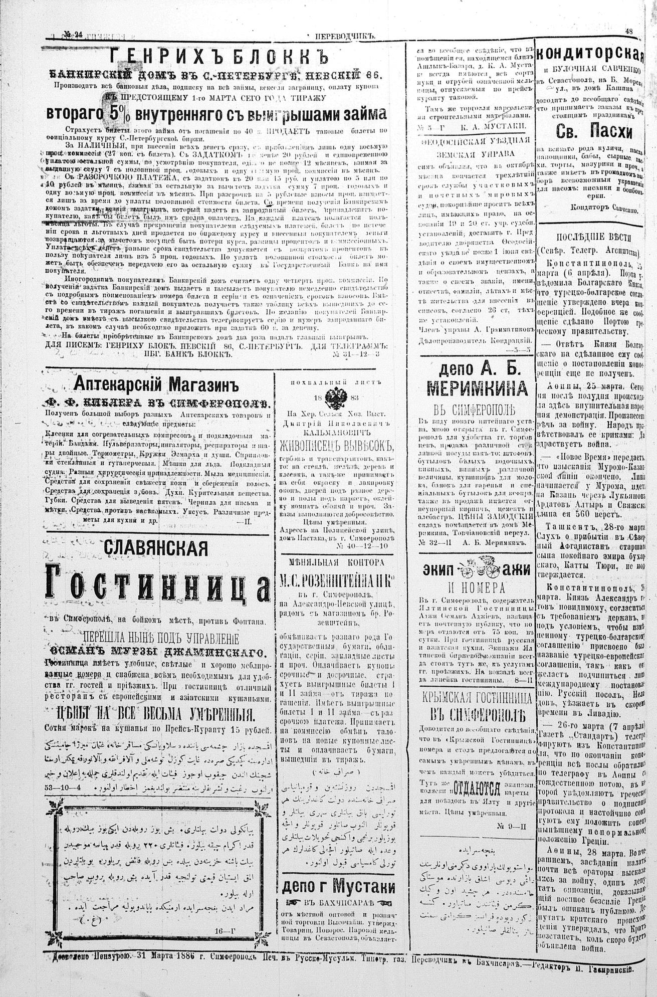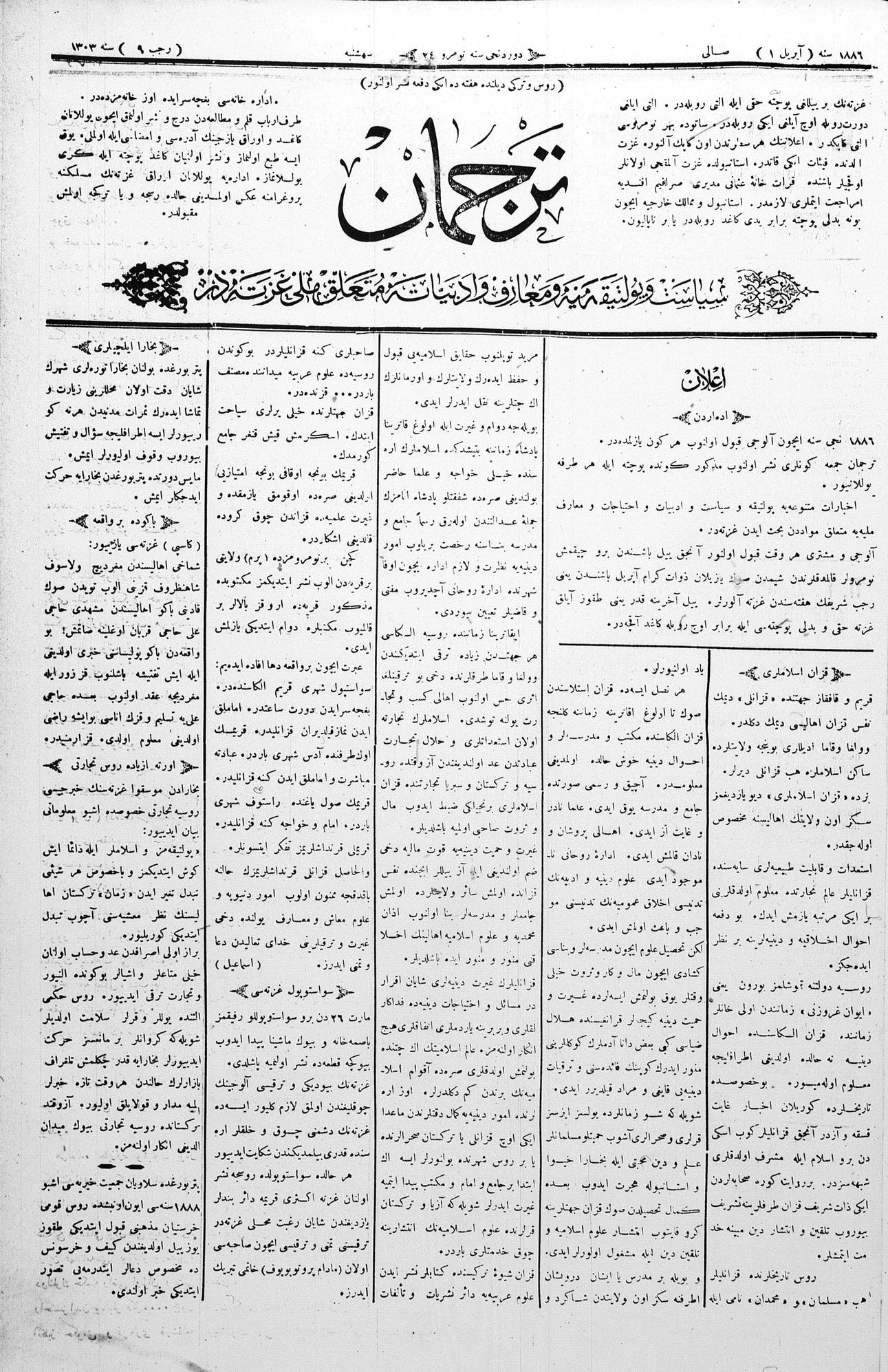 Tercüman, 01 April 1886 Year 4 No 24