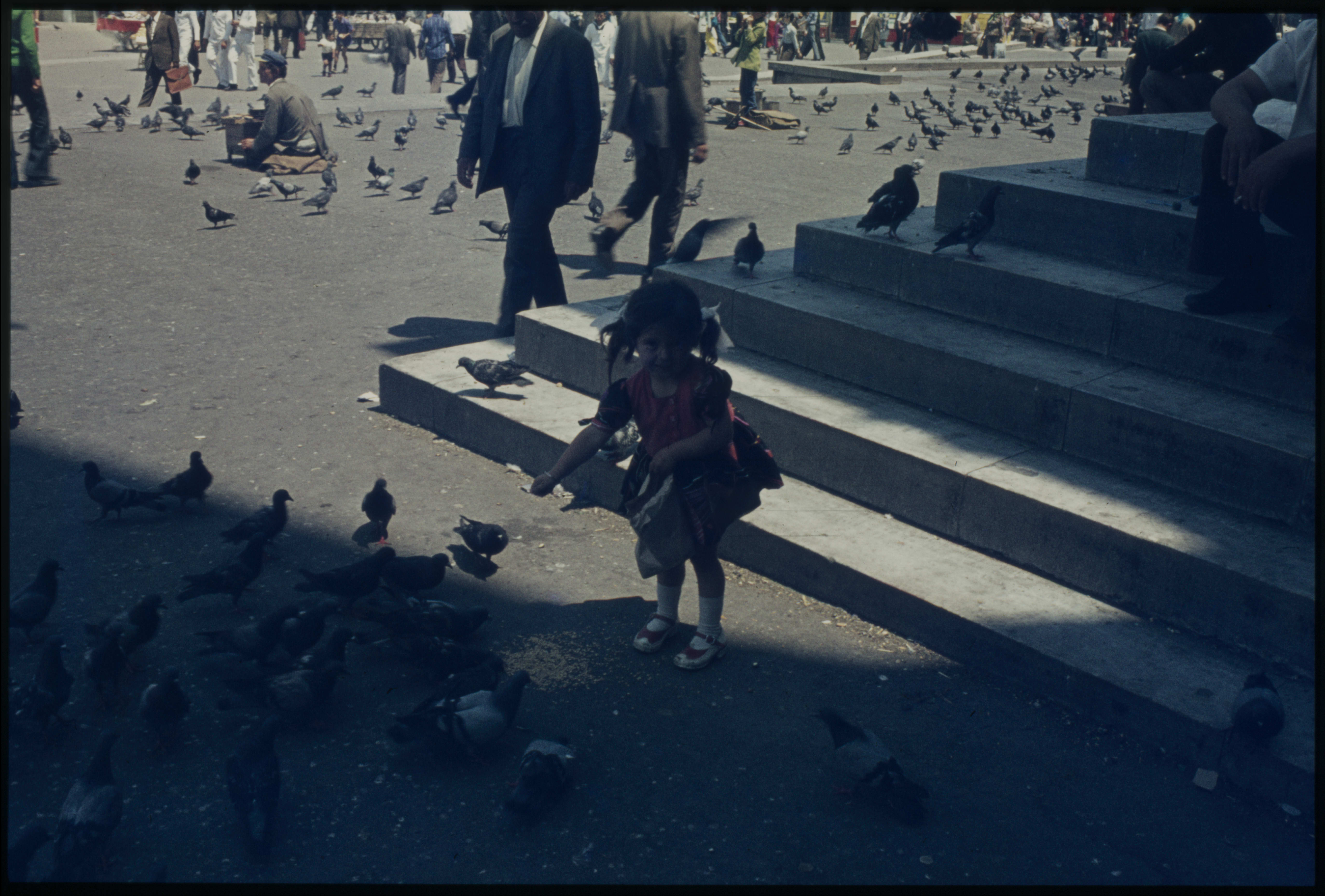 İstanbul-Eminönü Yeni Camii Meydanı'nda güvercinlere yem atan bir çocuk