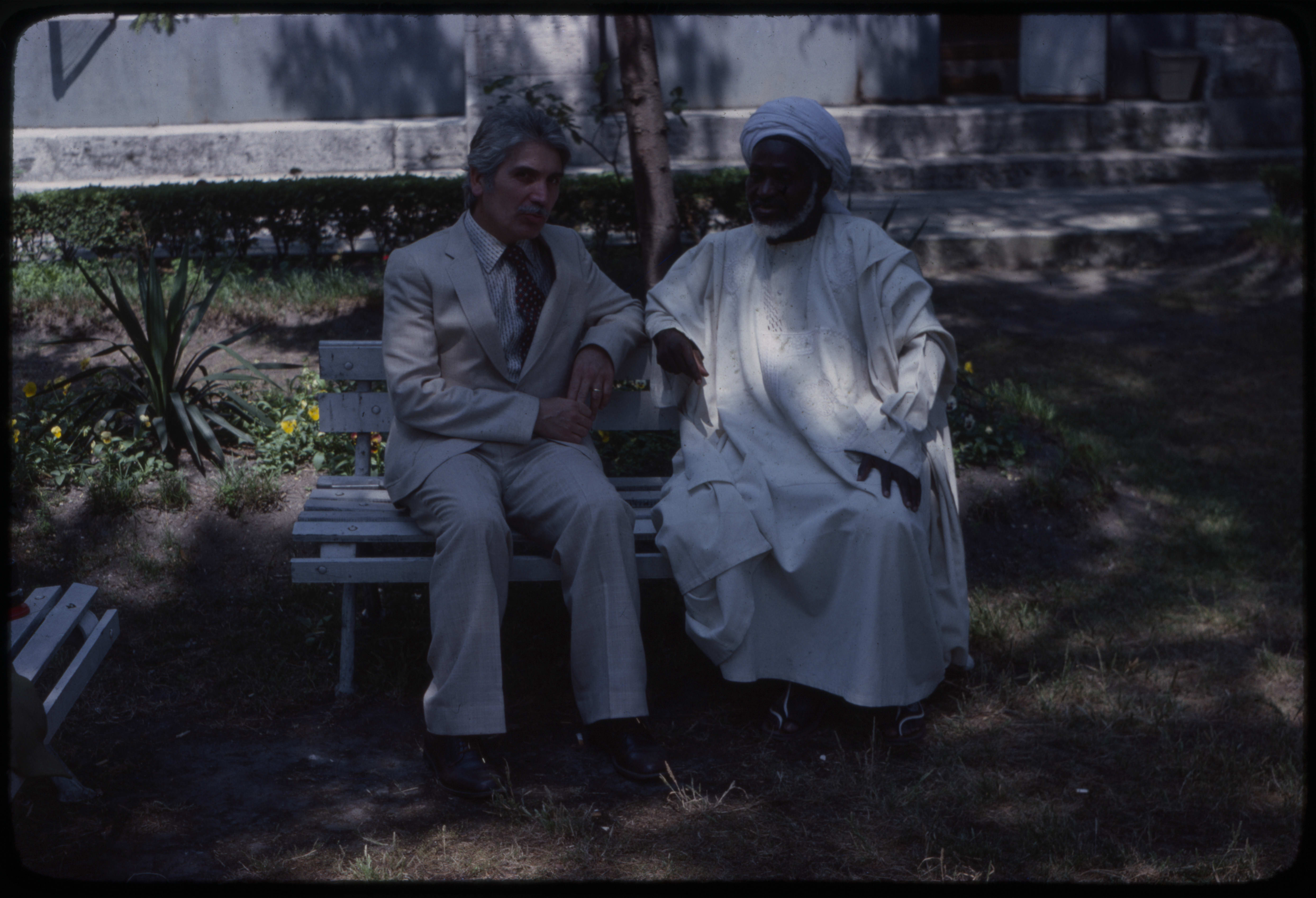 İstanbul Süleymaniye Kütüphanesi Müdürü Muammer Ülker, Arap kıyafetli biriyle görüşürken